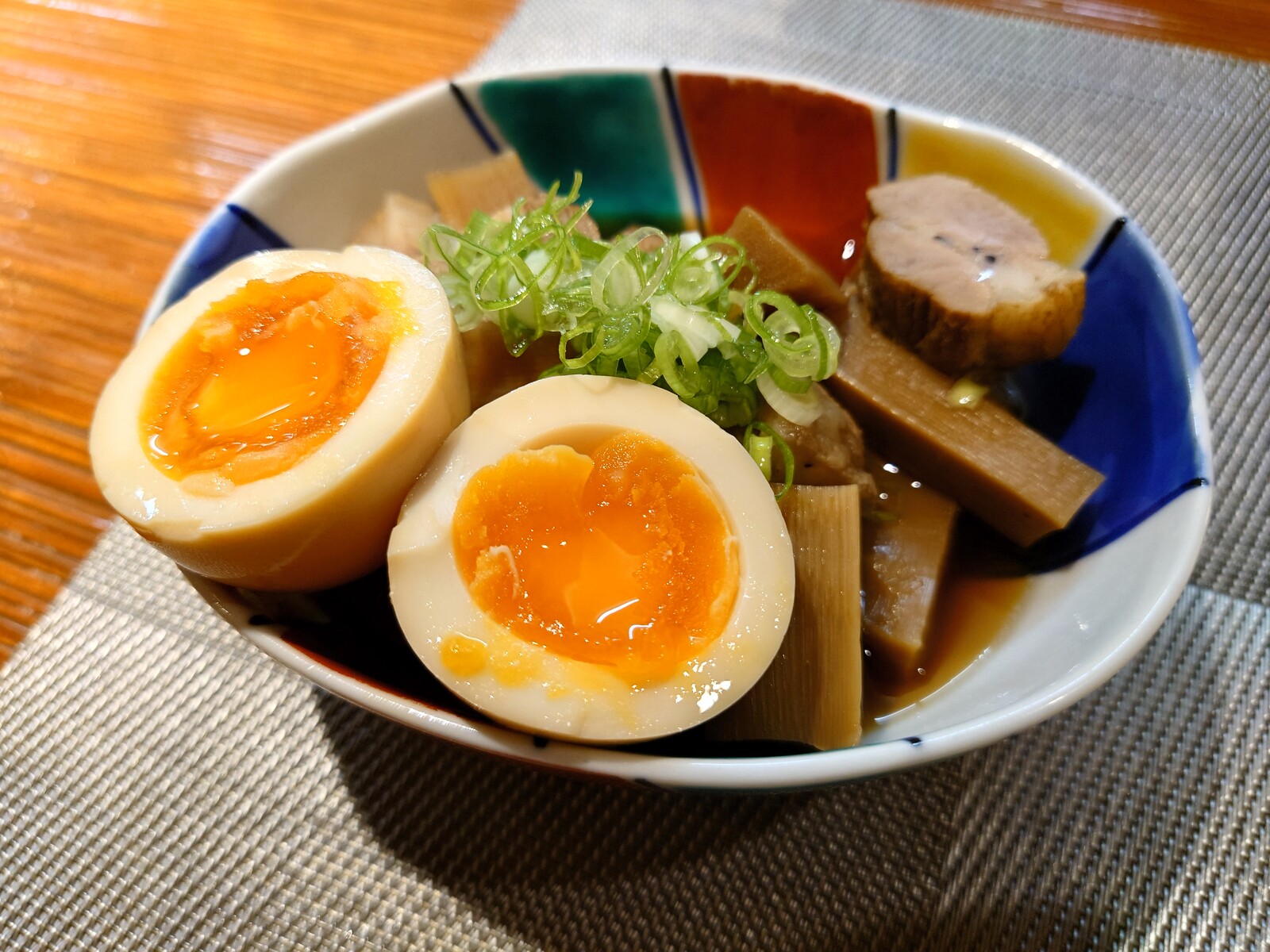 もう一品、注文したのが『自家製チャーシュー』。一口大に切り分けられたチャーシューとメンマは、よく味がしみてて柔らかさも程よい、これまた絶品。この切り口と味付は、ラーメンに入れるチャーシュー&メンマではなくて、おつまみ専用に自家製したことが納得の一品だったよ。半熟煮玉子も添えられていやはや素晴らしい。