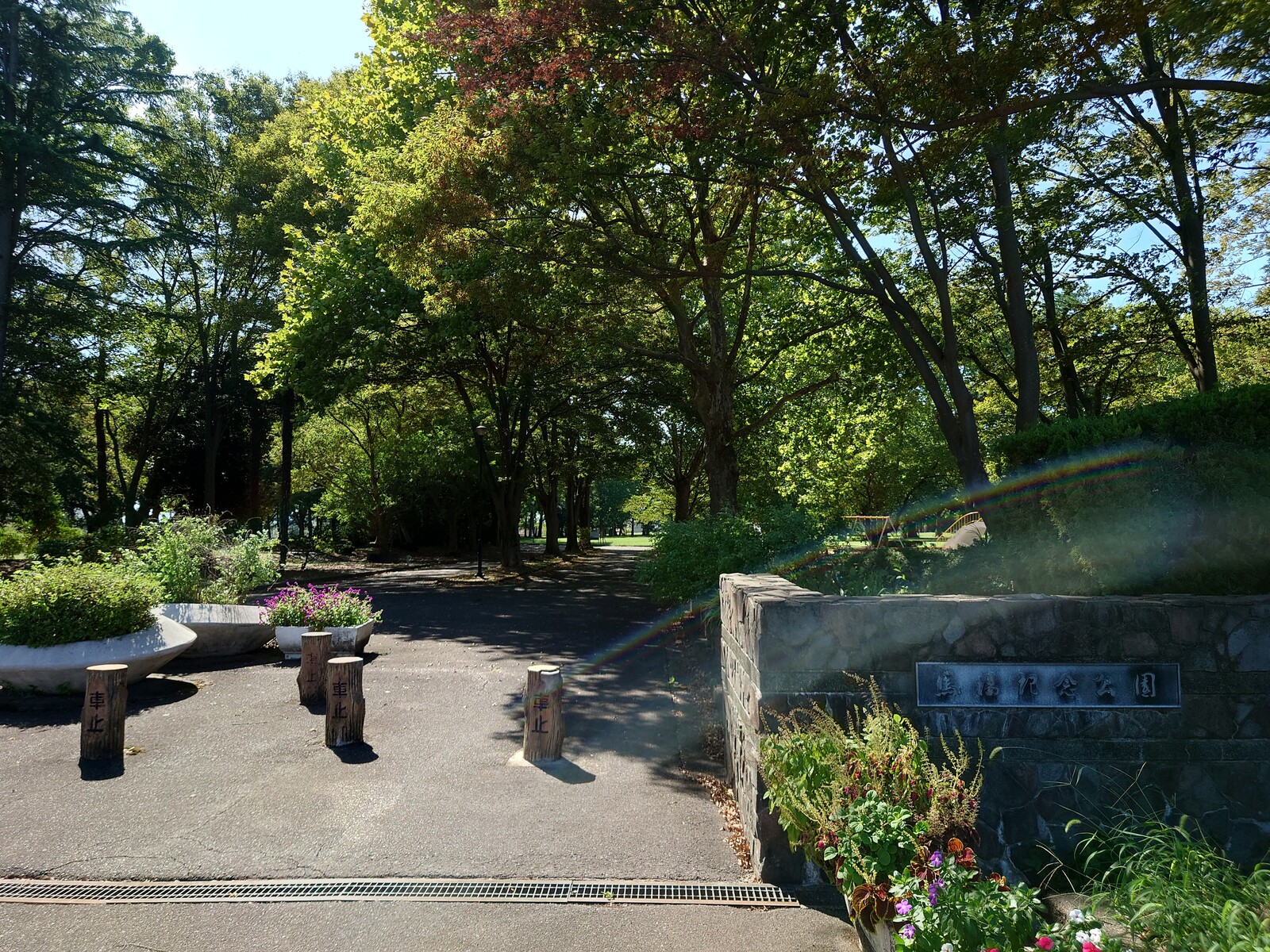 富山地方鉄道富山港線の蓮町駅から西を見ると、緑豊かな公園があるんだ。前々から、どんな公園なんだろ、と思っていたんだけど、この日は、中を訪れてみたよ。公園の名前は「馬場記念公園」。馬場っていうから、昔は、何か馬に関係のある公園なのかと思っていたんだ。