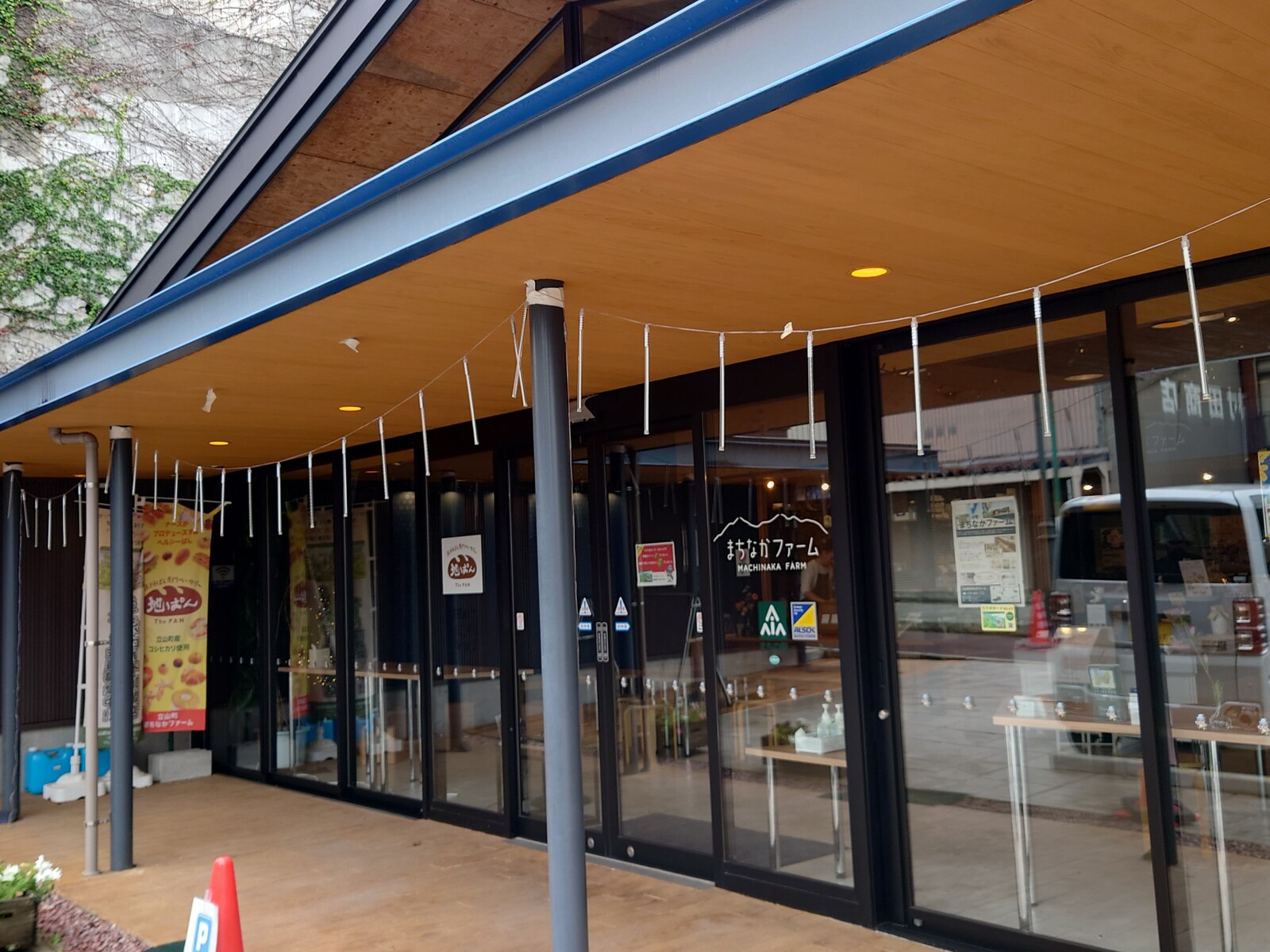 それは立山町の中心地五百石のさらにまん中。「五百石天満宮」のある交差点の向かい角にあるのが「立山まちなかファーム」だよ。まちの駅として立山町ブランド品や立山町の特産品を販売しているんだって。中には、コーヒースタンドやパン屋さんがあるし、イートインスペースもあるから、カフェのように時を過ごすことができるよ。