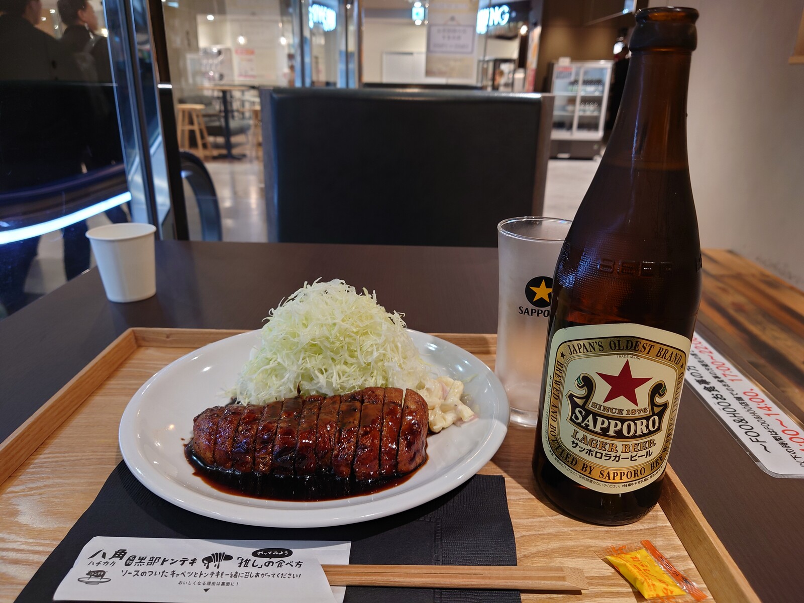 この日は、『名物黒部トンテキ』のロースを単品で。一緒に赤星『サッポロラガー』もいただこうではないか。