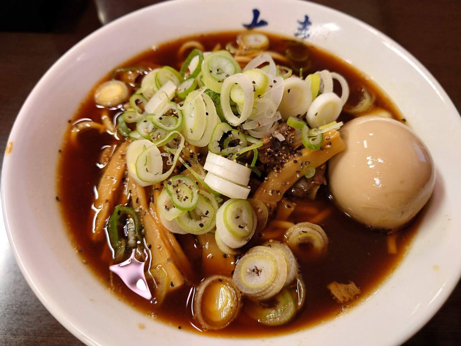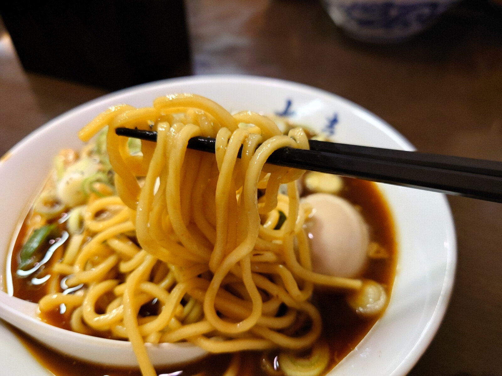 大喜といえばストレートな麺だよね。この麺が、真っ黒いスープにマッチするんだ。久々の富山黒醤油ラーメンを堪能したのだった。