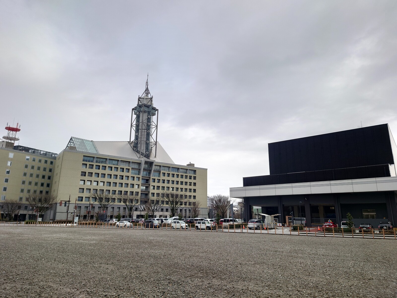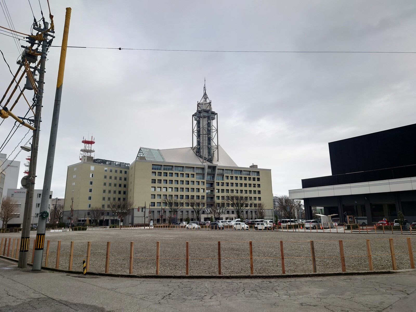 富山市役所をこれまでにない角度から見た 2024年01月30日 以前、「NHK富山放送局」があった場所が更地になっていたよ。そしたら、これまでとは違った風景が広がっていたんだ。富山市役所の全景が、こんな風に見えるだなんて、なんだかとっても面白い。←ここへ行けば富山にくわしくなれるよね。 更地は、今は、柵で囲まれているよ。この土地は、元富山中央警察署跡地と交換される形で、今は、県が所有。これから、どういう風に使われるか決まっていくんだろうね。 富山市役所と富山県民会館が相並ぶ様子が見られるのも、跡地利用が決まるまでのこと。どう変貌を遂げるか楽しみだね。 < 前の記事次の記事 > コメント コメントフォーム 名前 コメント 評価する リセット リセット 顔 星 投稿する 情報を記憶