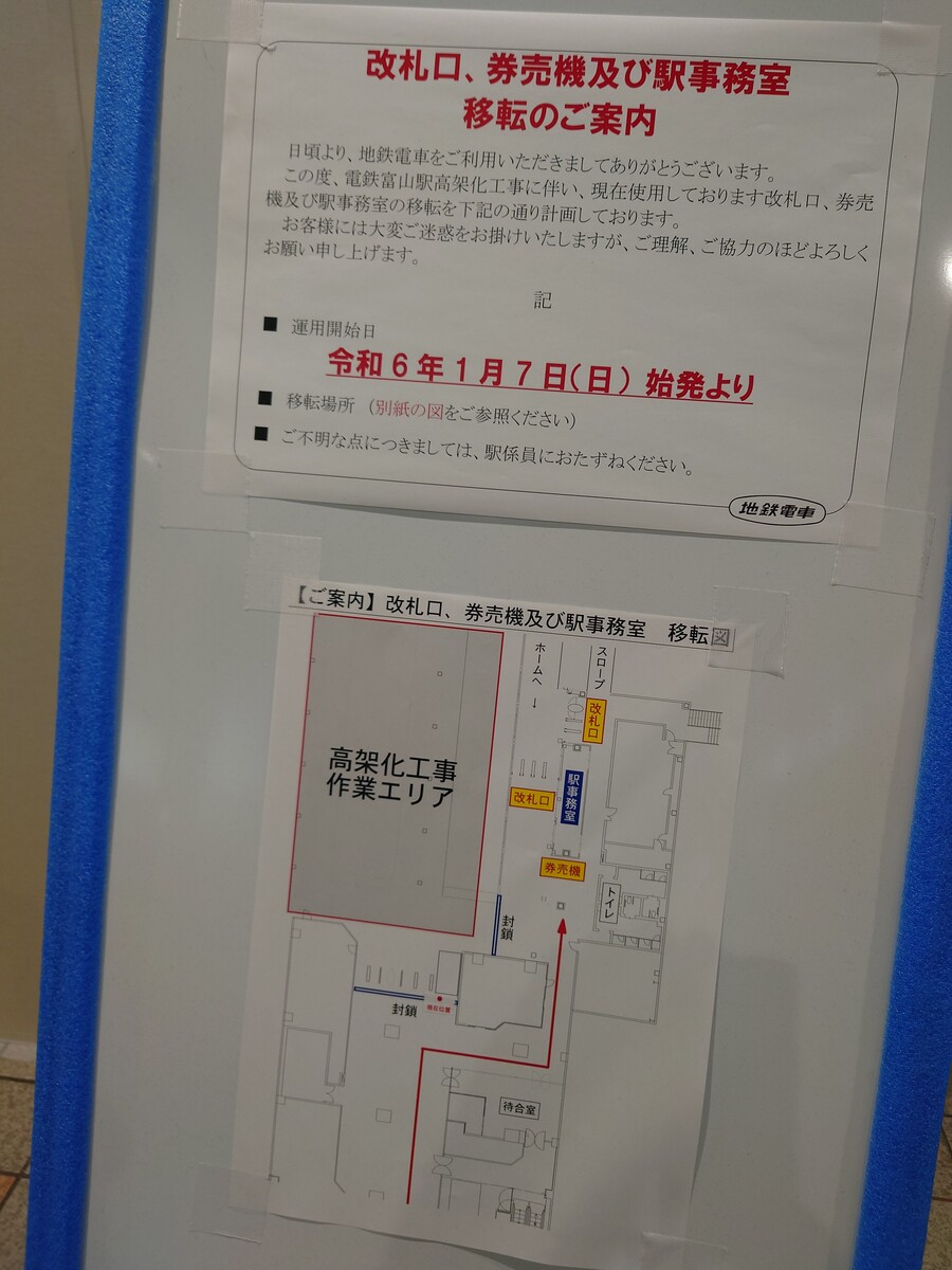 この日、家に帰るのに上滝線に乗ろうと思って電鉄富山駅にやってきたボクは、いつもの改札が閉鎖されているのに、「おおぅ、ついに」と思ったんだ。前々から、ホームや線路を移動したりしてたからね。