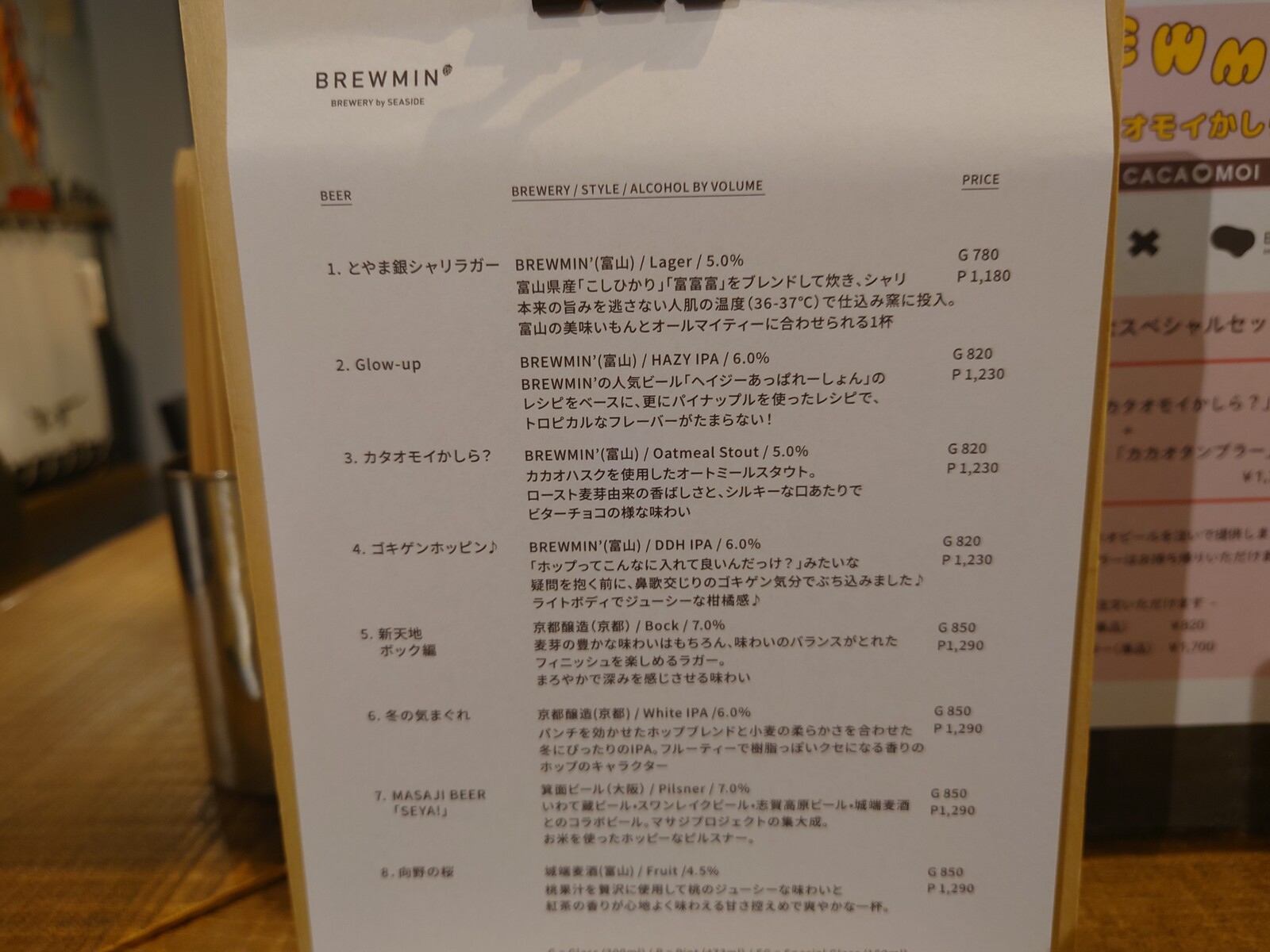 この日は、散歩の途中に「総曲輪BASE」に寄り道。カウンターだけのドラフトビール屋さん「ブルーミン」で、グラスビールを1杯たしなんだのだ。