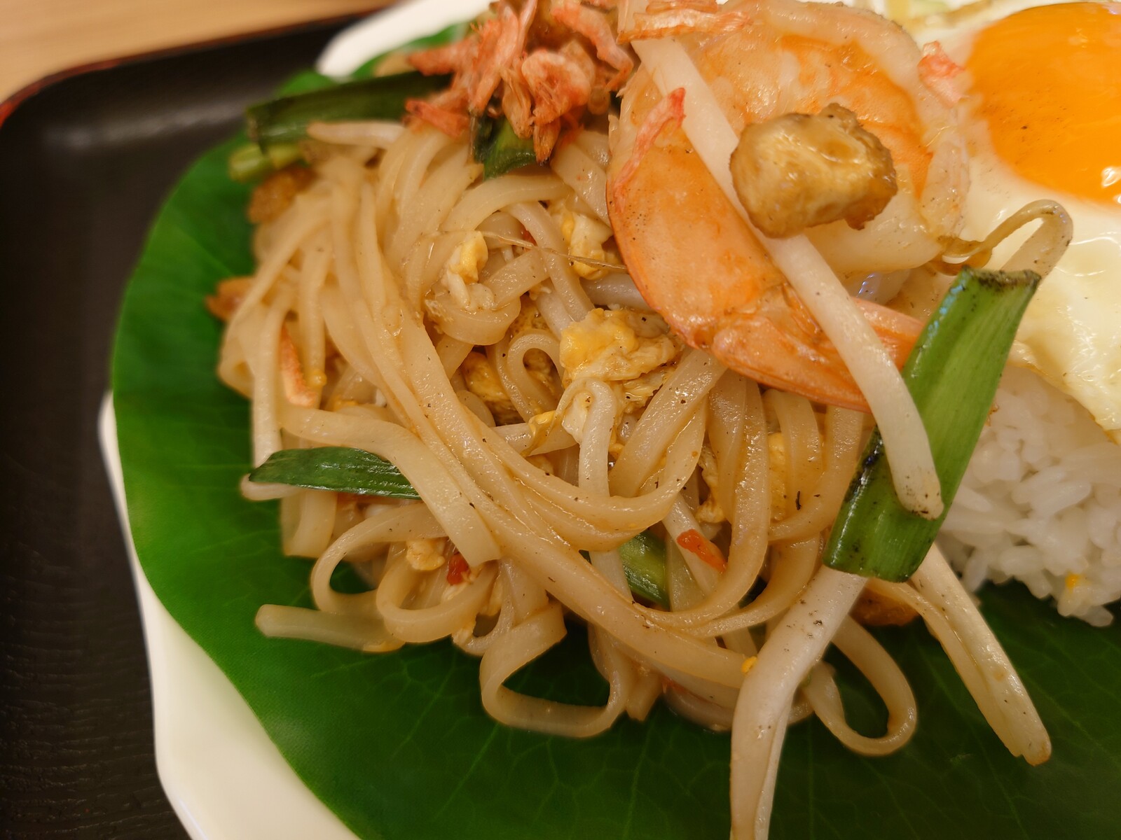 パッタイは、麺を炒めた料理だってところと材料はもやし、ニラ、たまご、海老といったなじみの品々なところは、焼きそばといえなくもないけど、共通点はそこまで。麺はライスヌードルだし、何よりナンプラーという魚醤の香りが独特で、かつ強烈なんだよね。でも、この味になじんでしまったら病みつきになるんだと思ったよ。