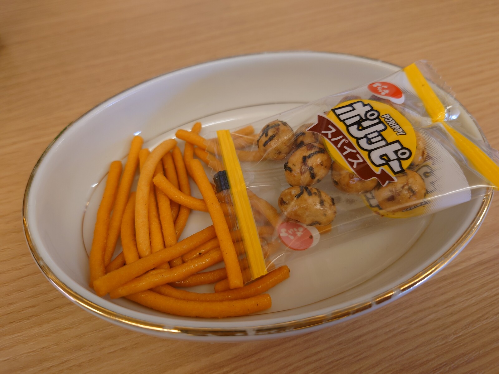 ビールと一緒に出てきたのがこちら。何やら麺をフライしてスパイシーに味付けした、タイのおつまみみたいだったよ。ビールに実にいい感じ。ポリッピーは日本のお菓子だけど、それもスパイス味でビールにはよく合うんだよね。