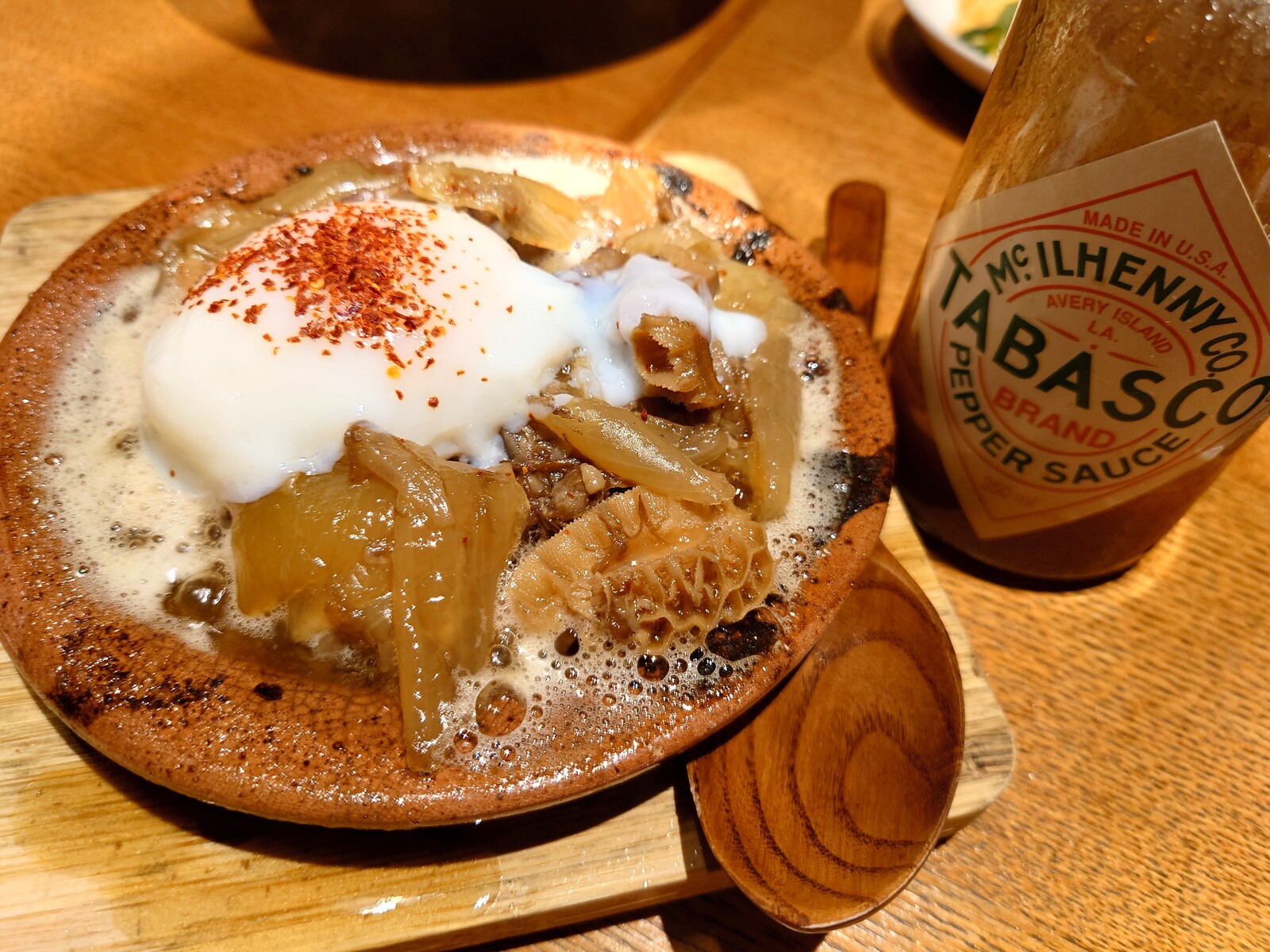まずは『牛とろ煮込み』。オープン以来、毎日継ぎ足していくタレで煮込まれている逸品の煮込みだよ。厳選された牛スジと玉ねぎを使ってるんだって。トリッパというかハチノスというかな胃の部位も見えるよね。イタリアンではよく使われるボクの好きな部位だけど、和風の煮込みにしてもやっぱり素晴らしいのだ。