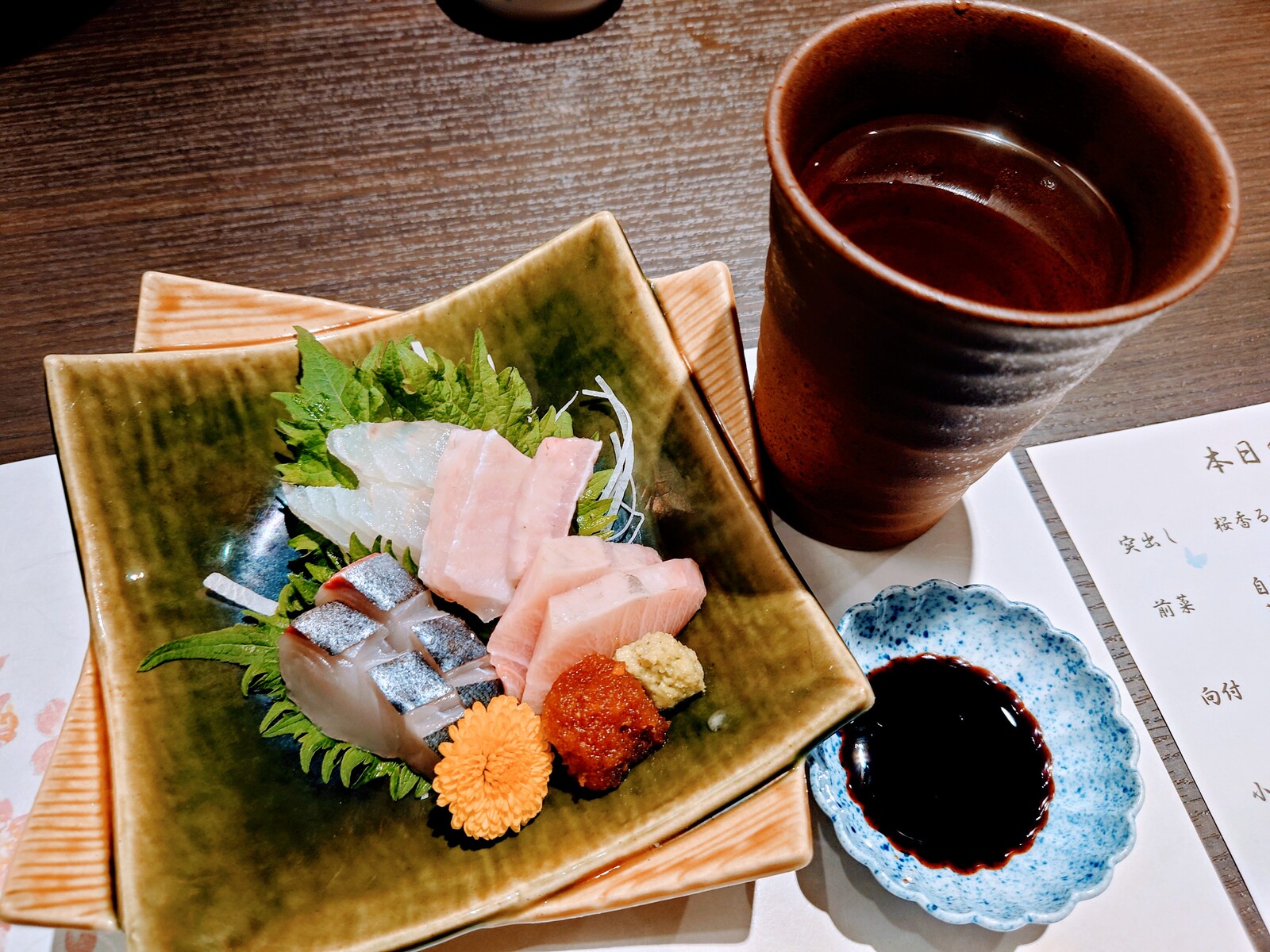 富山湾の旬の魚をのせた造り盛り合せもまた一級品。ぶりがなくても、富山湾の旨い魚が季節ごとに楽しめるのだと思ったんだ。