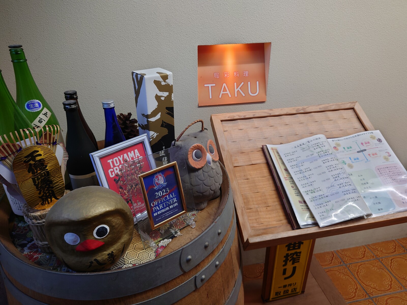 その日は、県庁前の一角にある「旬彩料理TAKU」で飲み会があったよ。ボクの知り合いが時々選んでくれるこのお店。それぞれの知り合いは、互いには知り合いではないんだけど、そんな彼らが選ぶのも納得の素敵なお店なんだ。