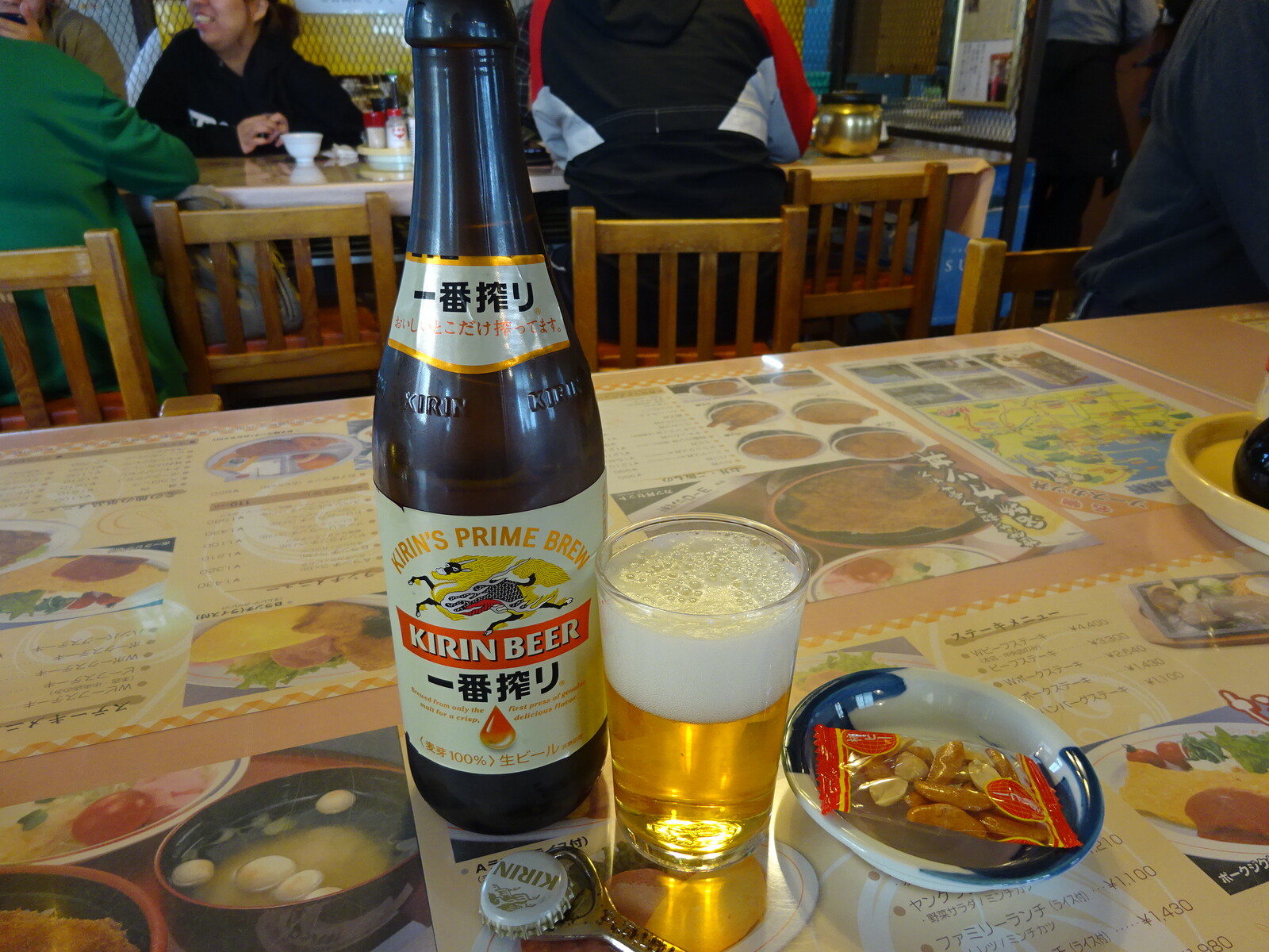 こんな素敵な丼は、ビールと一緒にいただくしかないではないか。生ビールもあったけど、ここは、『キリン一番搾り』の中瓶でしょ。