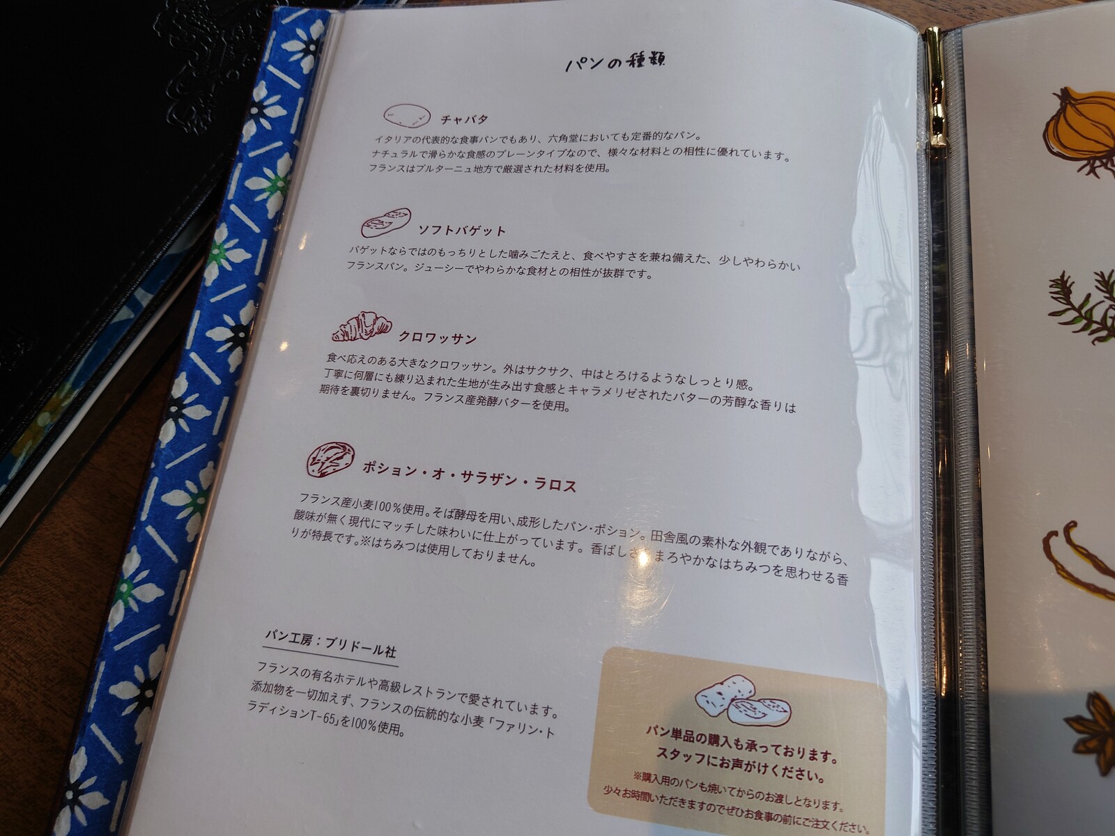 使われているパンの種類もちゃんと説明されてたよ。