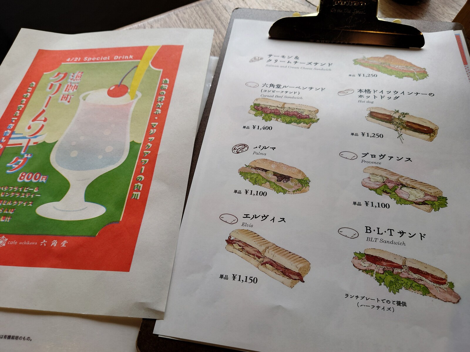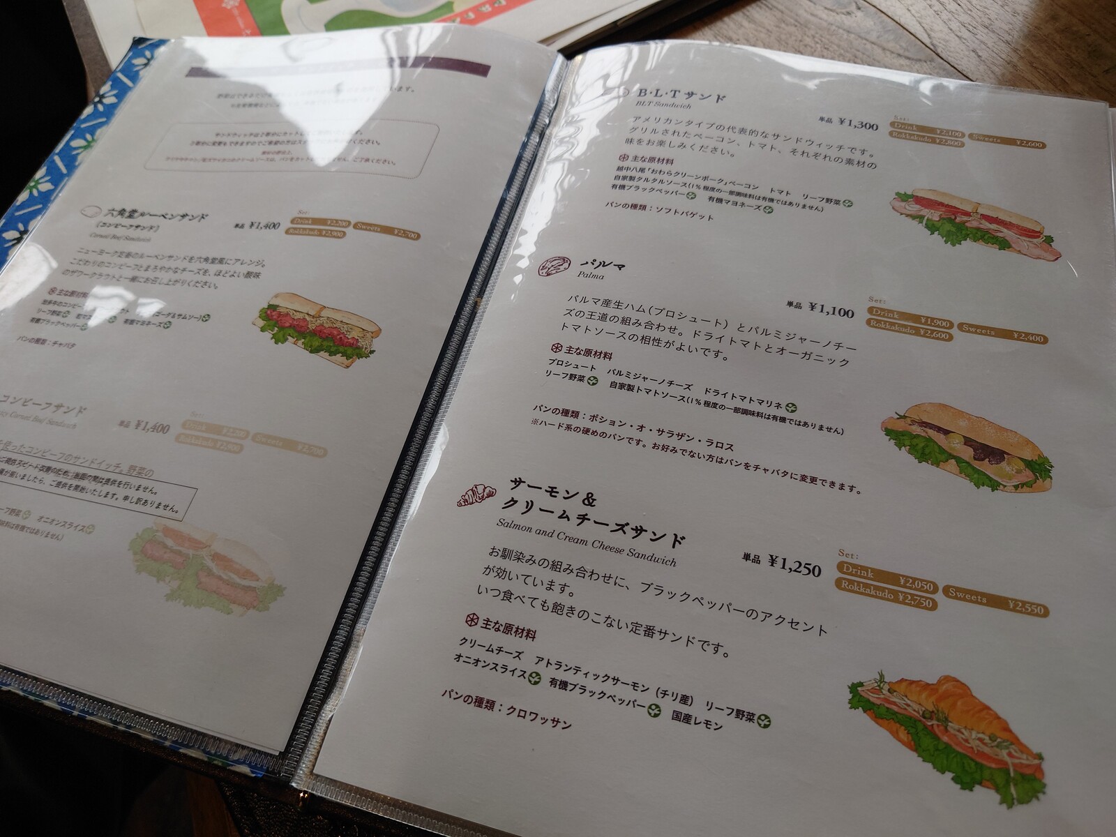 メニューには、サンドイッチの中身についてくわしく書いてあるから、よく読んでから選ぶのがよかろう(笑)。