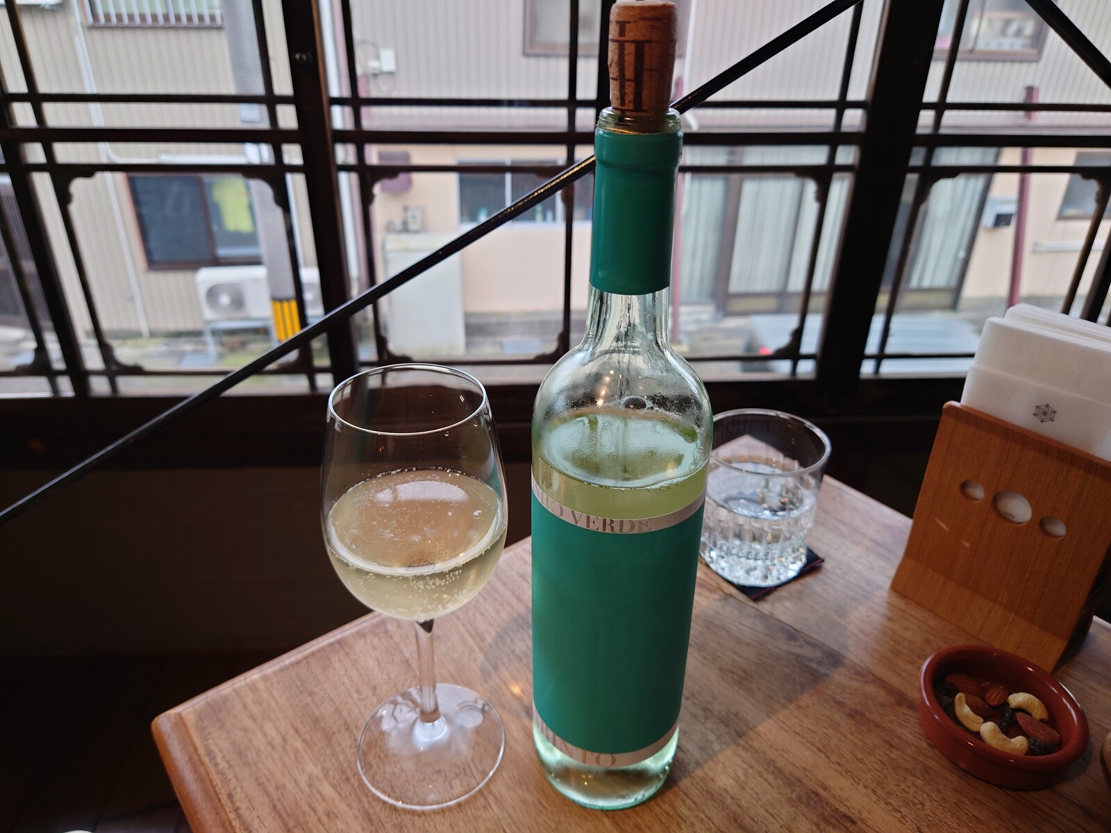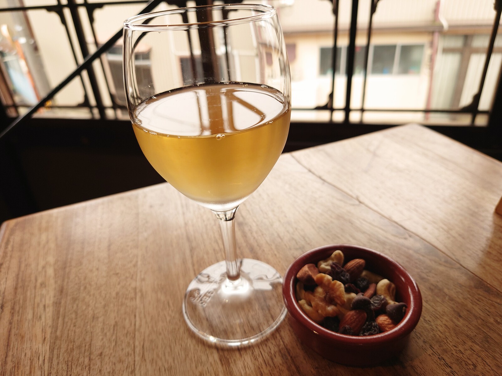 かくして、この日は古民家を再生したカフェ「uchikawa六角堂」を訪ねてみたよ。サンドイッチと一緒にクラフトビールのひと時を過ごそうと思ったんだ。ところが、この日は、あいにくビールが品切れ中。お店のマダムが白ワインをすすめてくださったので、それをいただくことしたよ。登場したのがこちら。