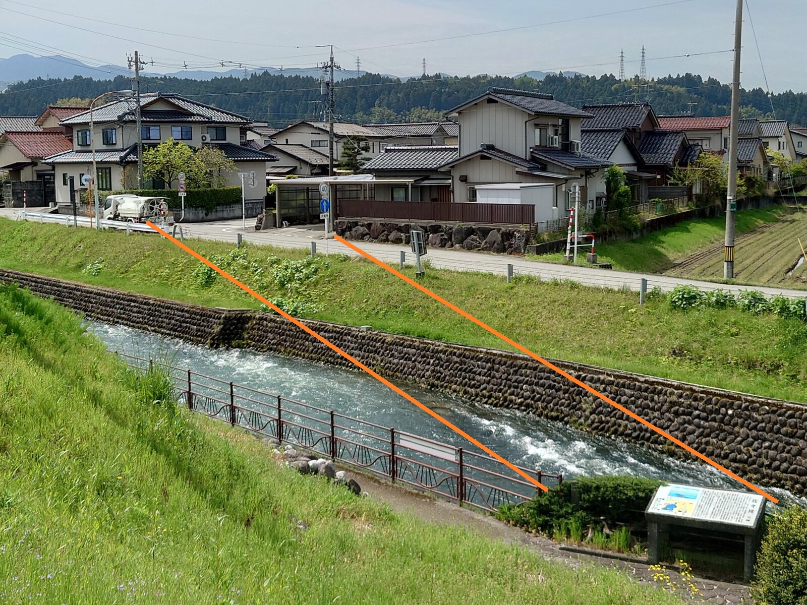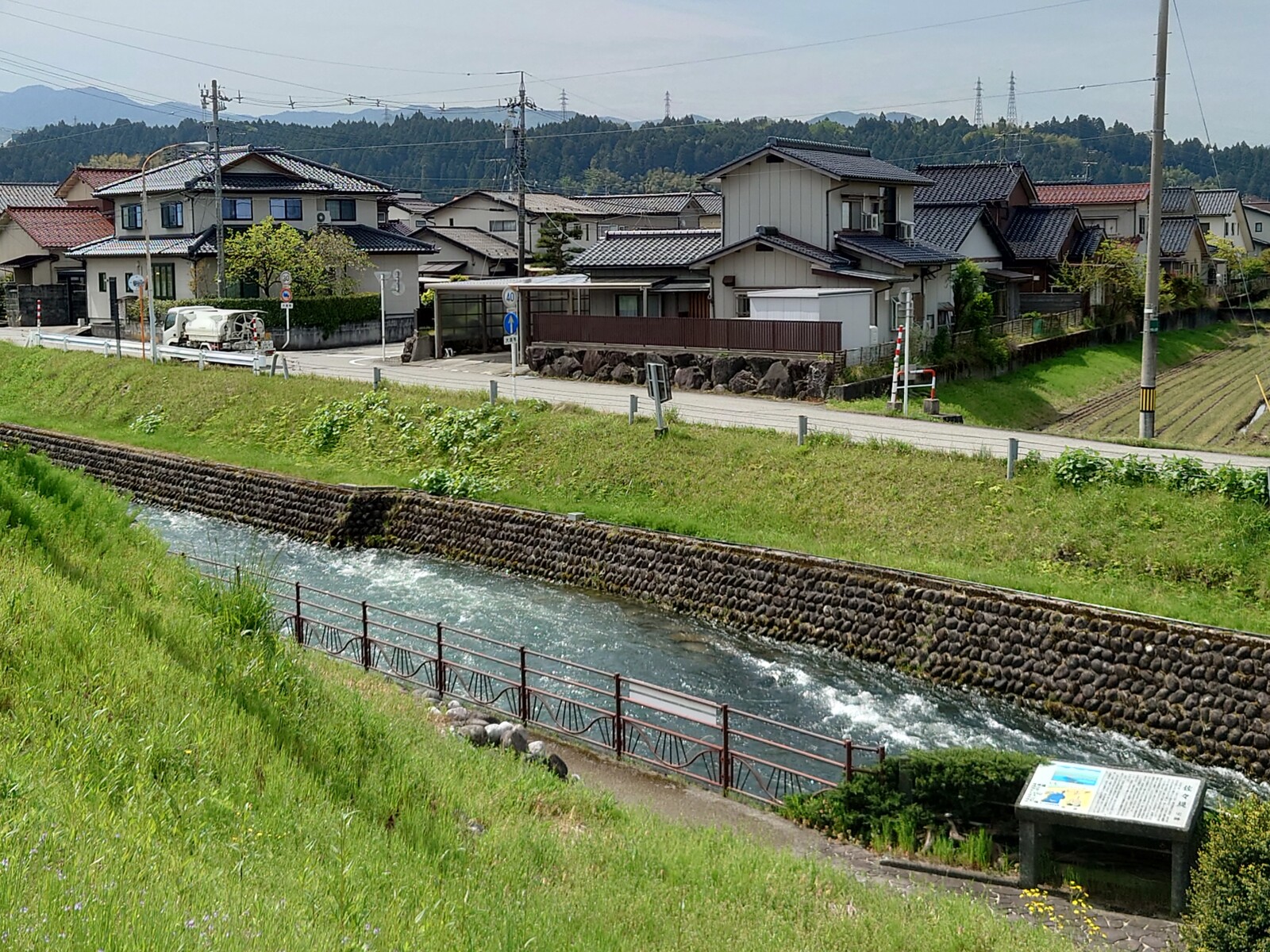 常願寺川沿いを大川寺の方に登っていくと、道は、やがて、常願寺川と並行して流れている用水のほとりを走るようになるんだ。その途中にあるのがこの場所。