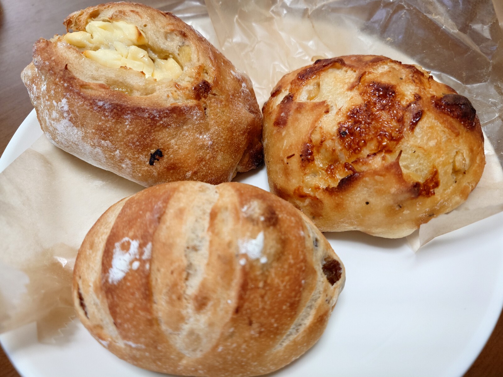 。この日購入したのは、『りんごとホワイトチョコのバゲット』『たけのこのリュスティック』『レーズンロール』といったラインナップ。
