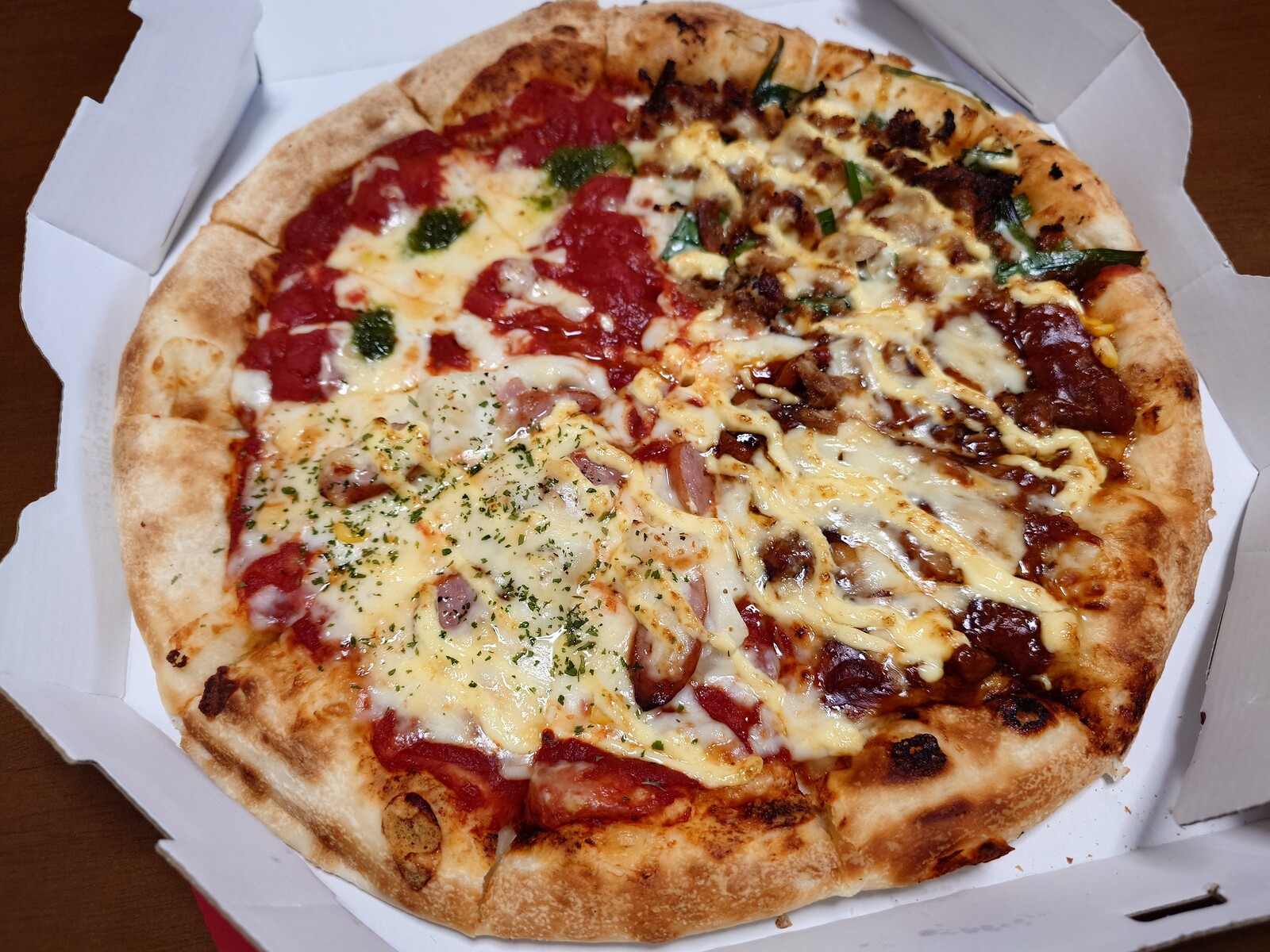 同じような材料を使い、同じようなつくり方をしているのに、味はやっぱり他社とは違うんだよね。ピザソースの味だったり、マヨネーズののせ具合だったりと、その理由はいろいろあるんだろうと思うけど。そして、それぞれがそれぞれに、ピザとしては甲乙つけがたいのだ。