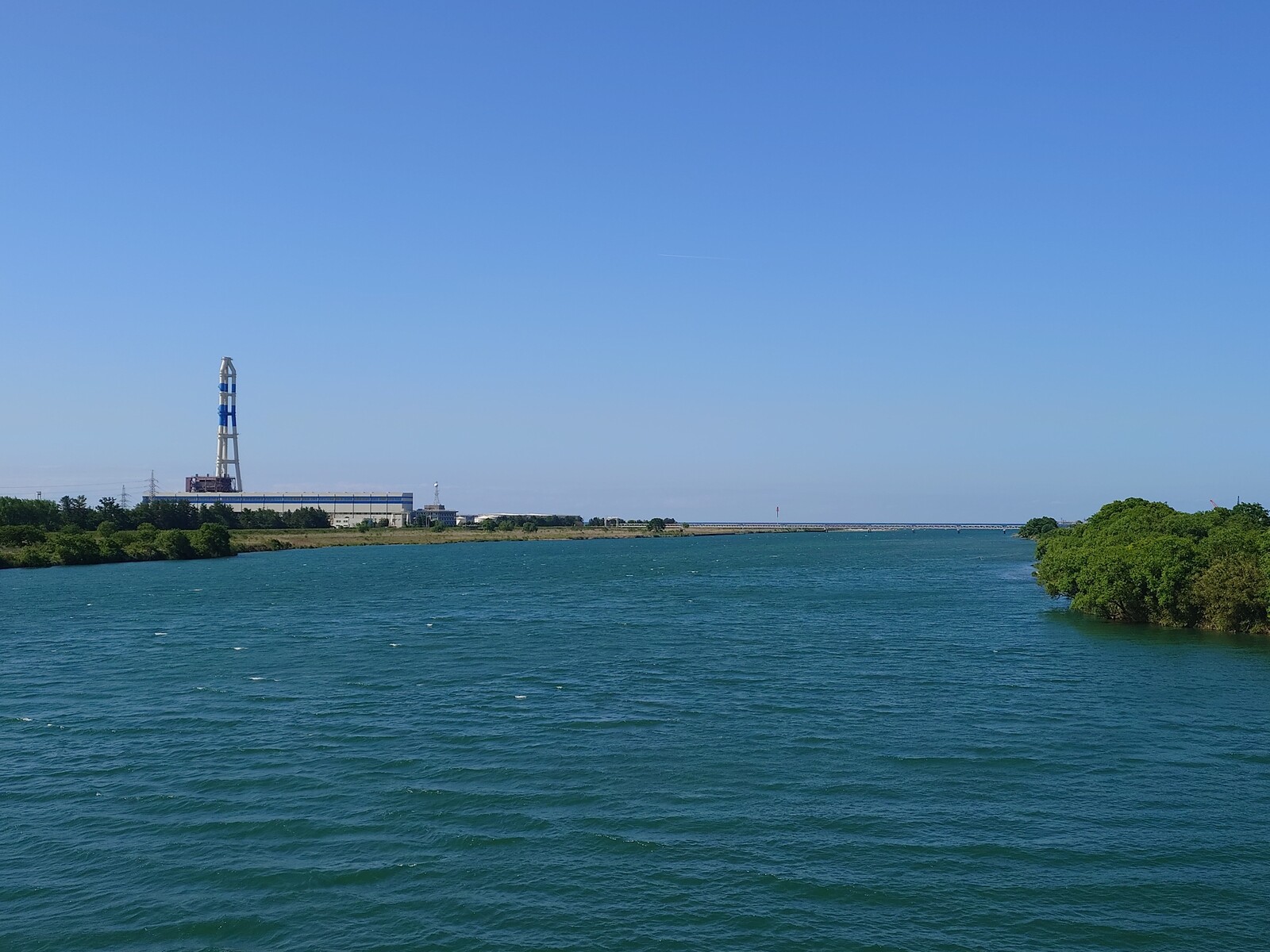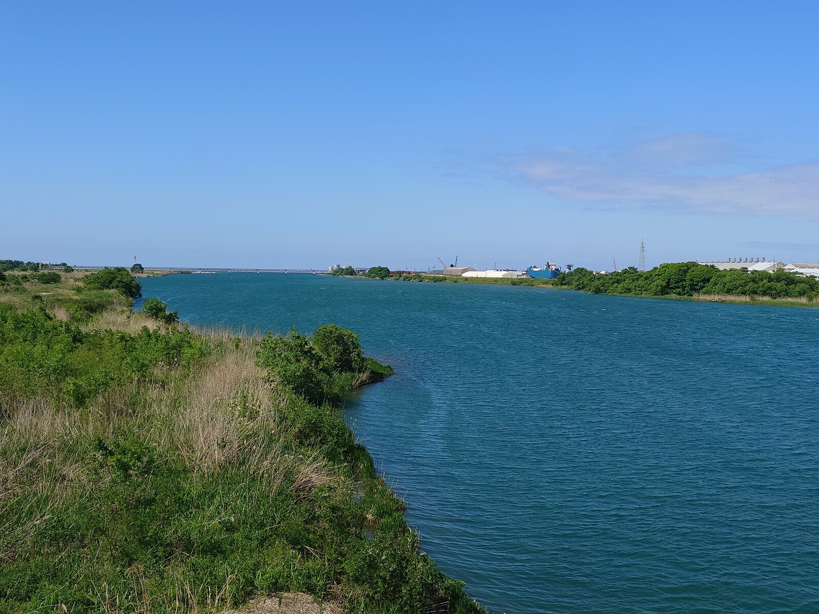橋から海の方を見渡すと、幅いっぱいにたっぷりの水がゆったりと流れていたよ。海が近い感じがただよう川面。