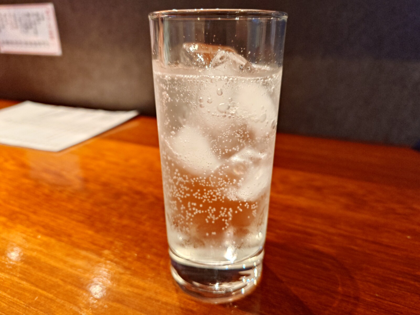 では、まず『キンミヤ焼酎のソーダ割』をいただこうではないか。外はかッと熱いから、炭酸で割ったキンミヤののど越しが、心地よいのだ。