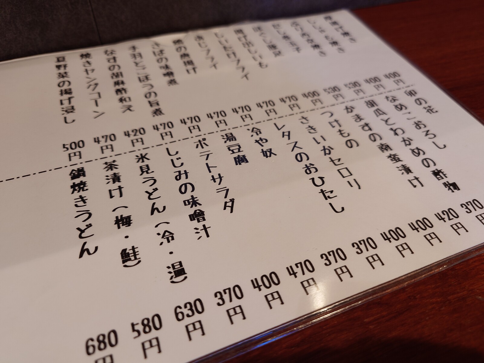 こちらがメニュー。どれもリーズナブルなお値段なのがまたうれしい。