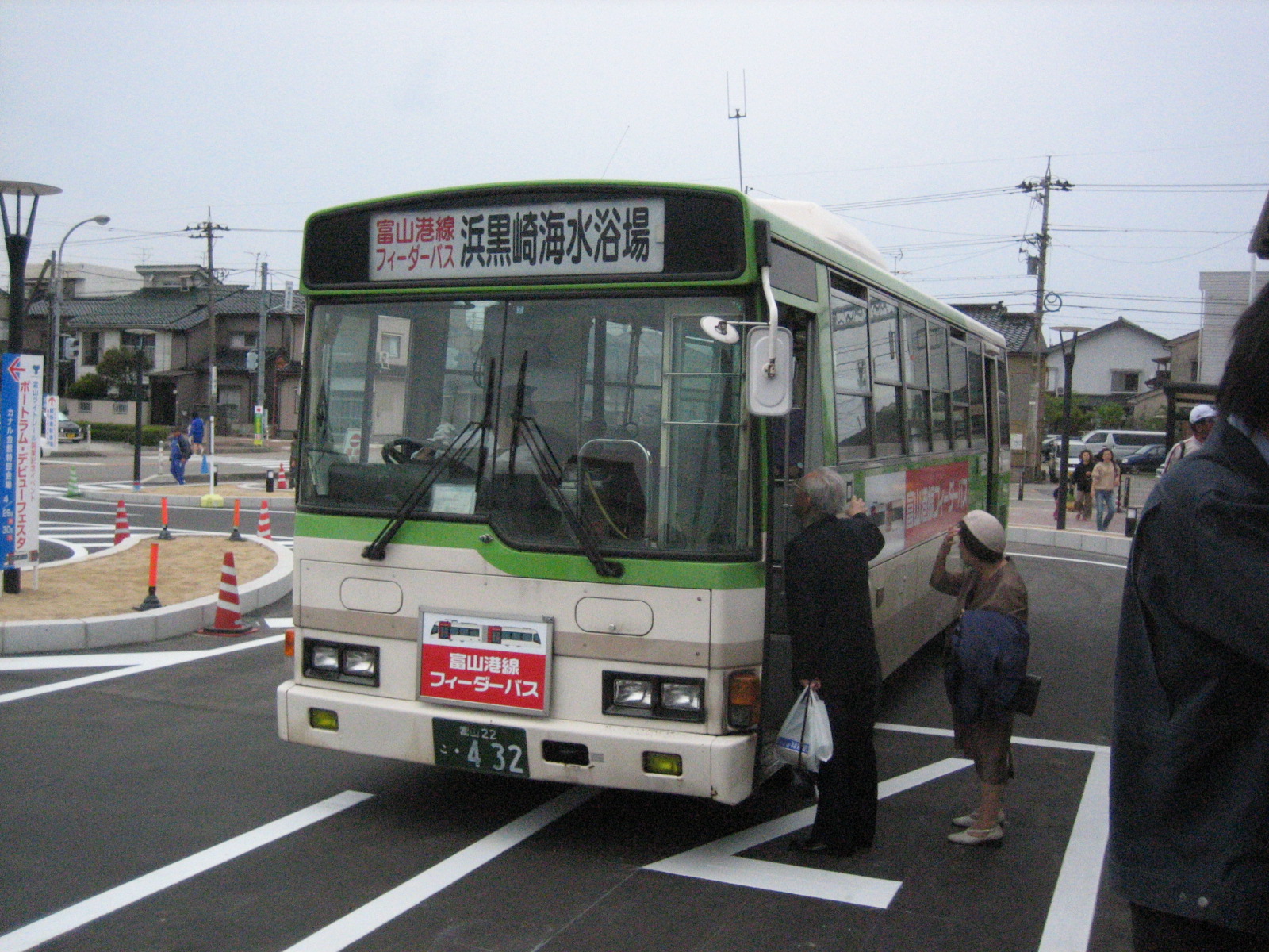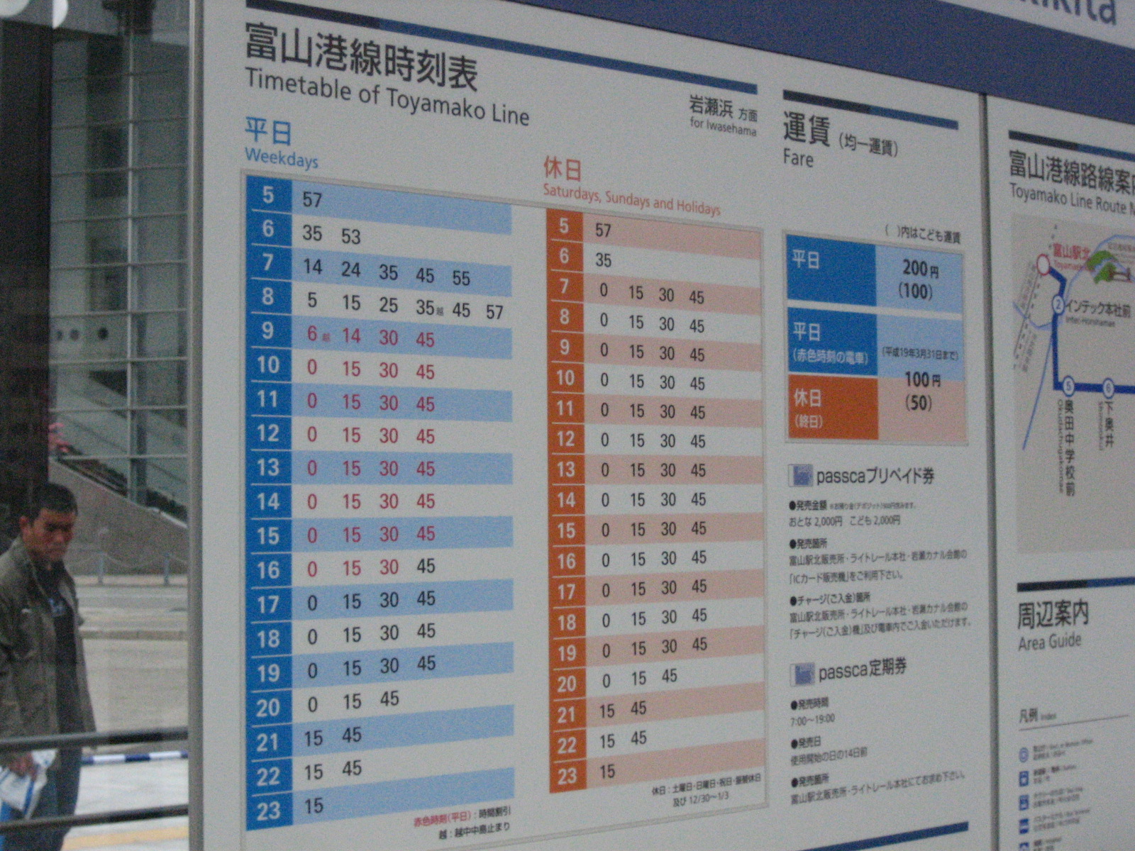 開業したばかりの頃は、富山市が富山地鉄バスに委託して走らせていたんだって。専用バスを購入してライトレール社が走らせるようになるのは、2007年のお話。