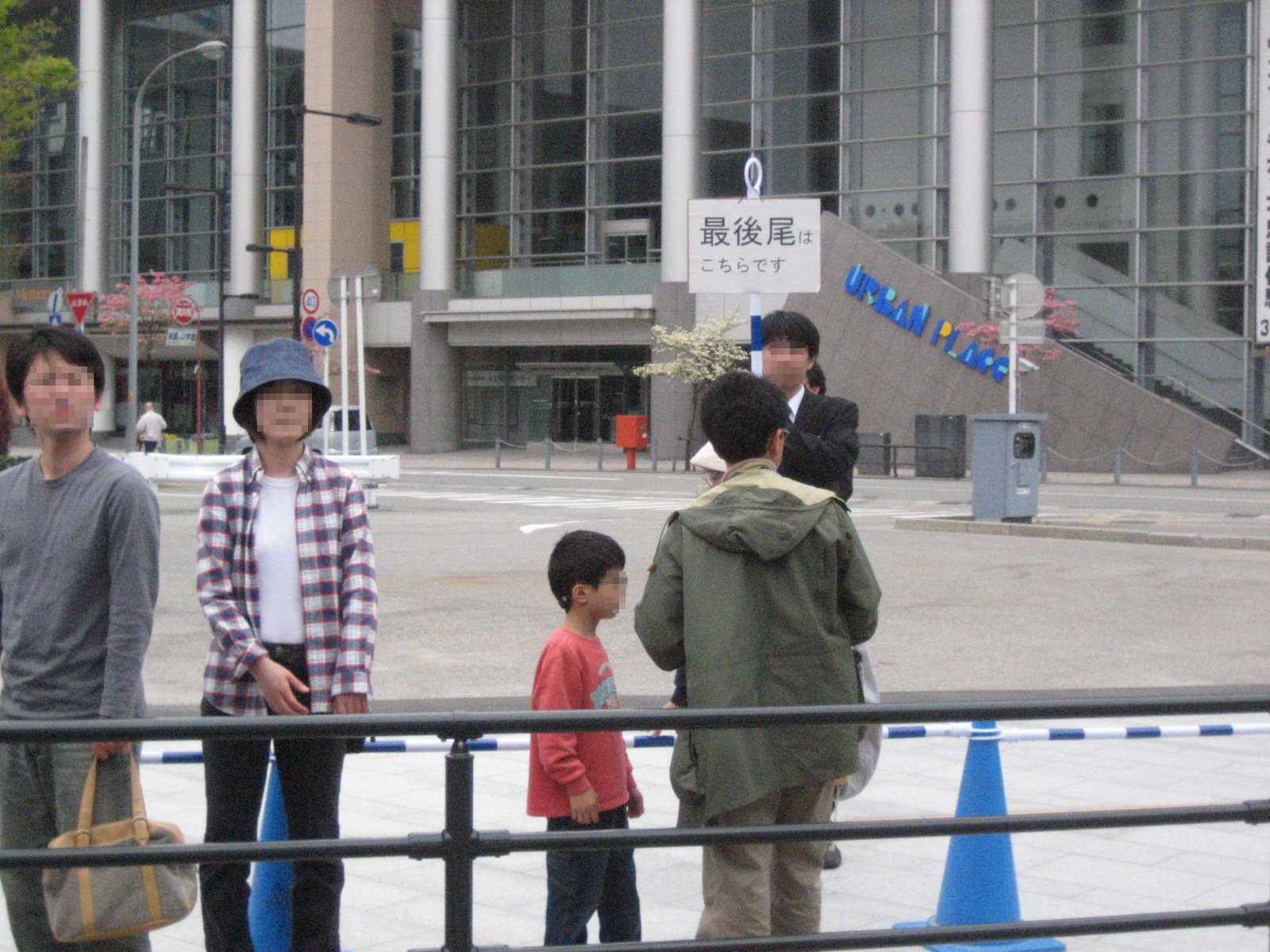 この日は、行列が長かったから、最後尾を知らせるプラカードを持った職員が立っていたよ。