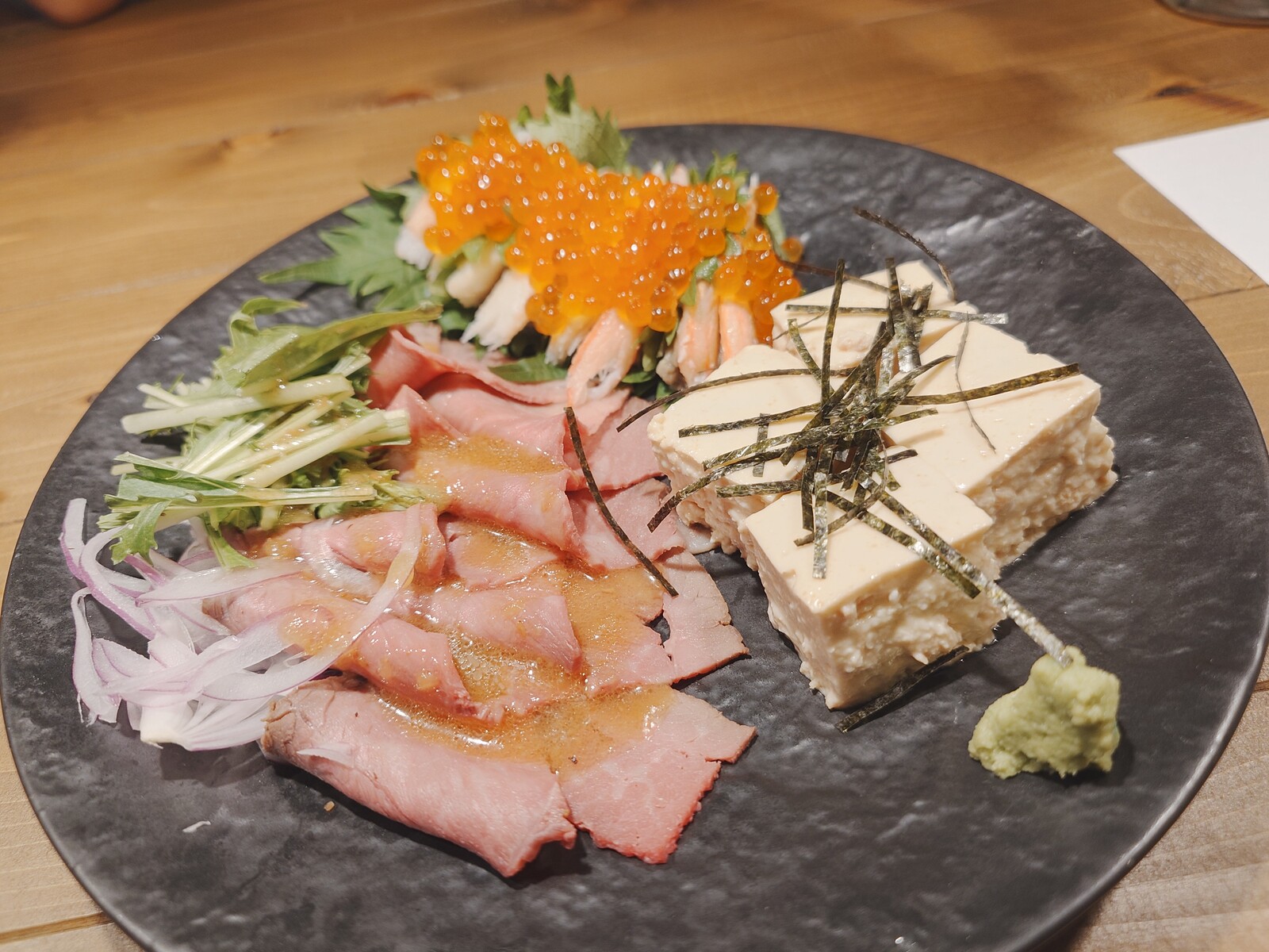 続いて登場したのは、『チーズそぼろ』『ローストビーフ』『蟹味噌大葉包み』の3種盛り。どれもこれも、お酒のすすむ実に素敵な逸品なんだけど、中でも『チーズそぼろ』が秀逸だったんだ。
