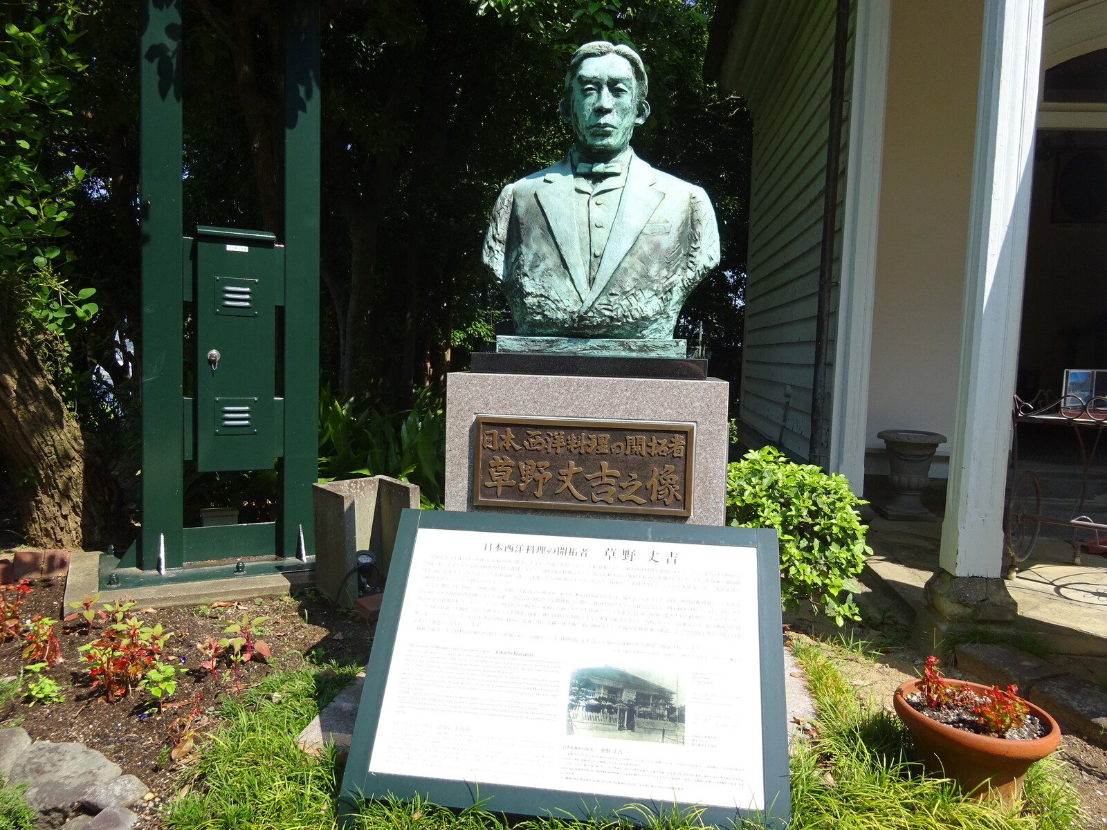 日本の西洋料理の祖を記念して、草野丈吉氏の銅像も飾られているんだ。