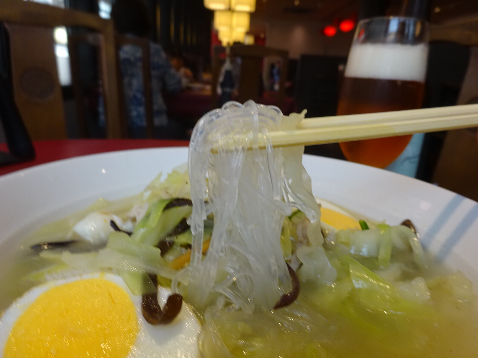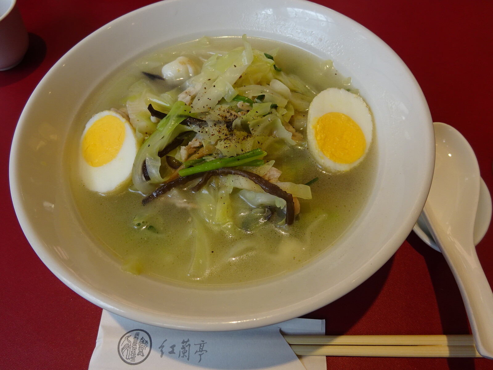 入ってるゆで玉子は、揚げてなければならないんだとか。熊本市内では、学校の給食のメニューにもなってるみたいだから、熊本市民には、ホントに身近なメニューみたいだね。かくして、太平燕の本家を自負する「紅蘭亭」で『太平燕』をいただいてみたよ。