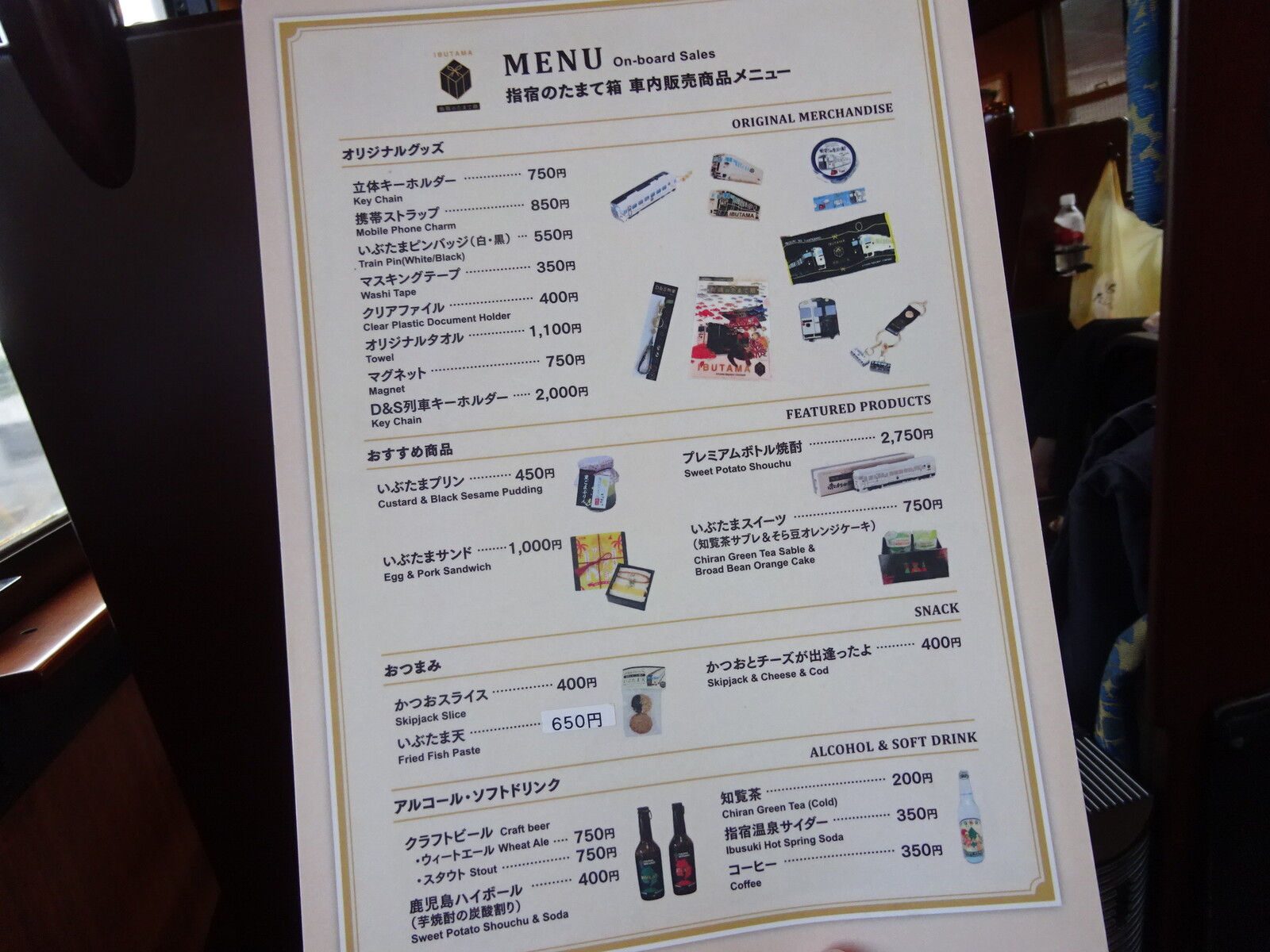 オリジナルグッズもいろいろあって、車内で買い求めることができるんだ。そして、「指宿のたまて箱」でしか味わえないグルメのラインナップも、とっても充実していたよ。