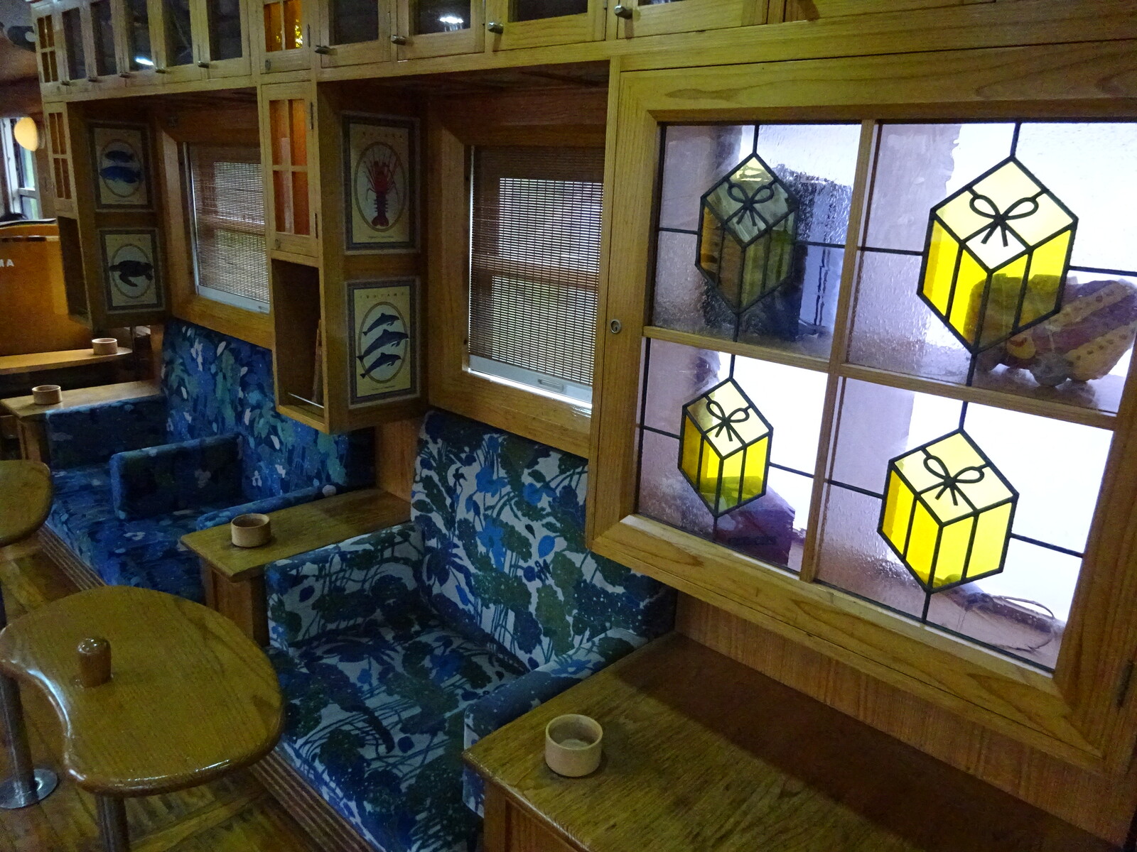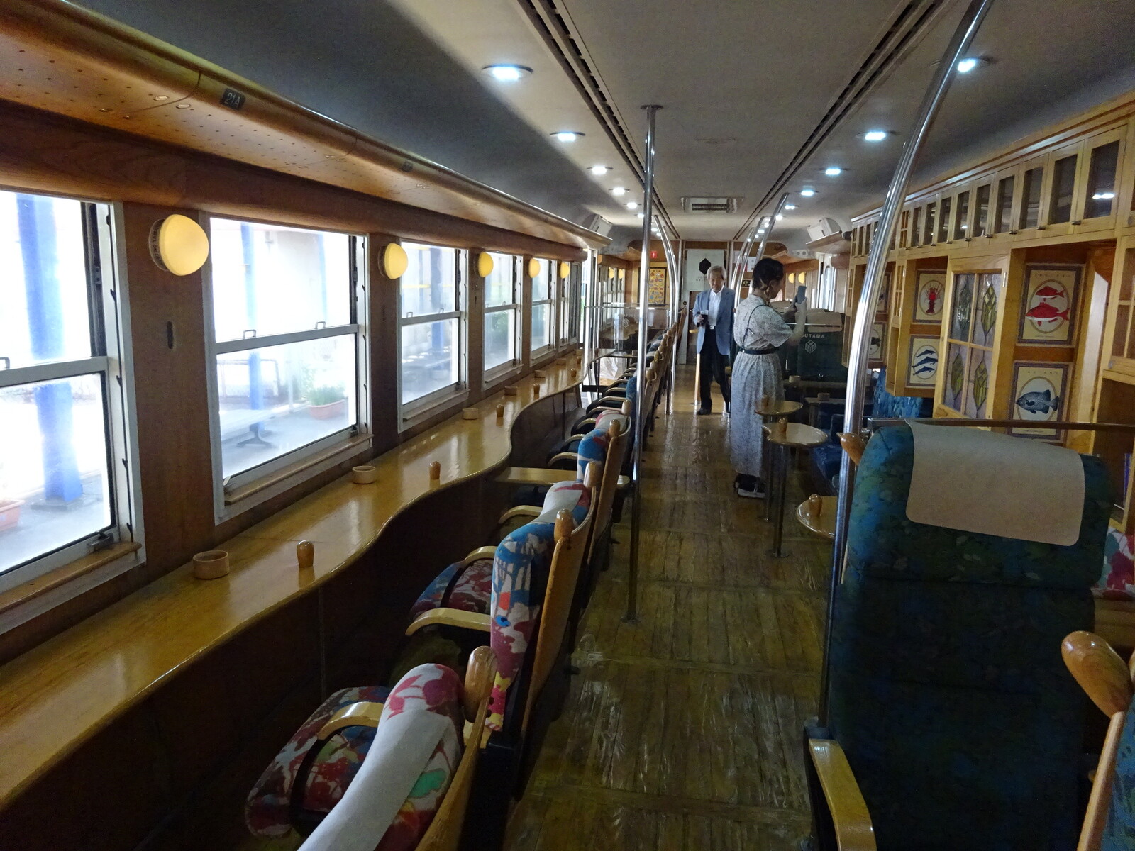 この列車、特徴的なのは、外観だけではないよ。シートは、車両ごとに様々にデザインされていて、指定座席以外に、自由に座ることのできるスペースが設けられていたんだ。ソファーのようにゆったりした席や・・・、