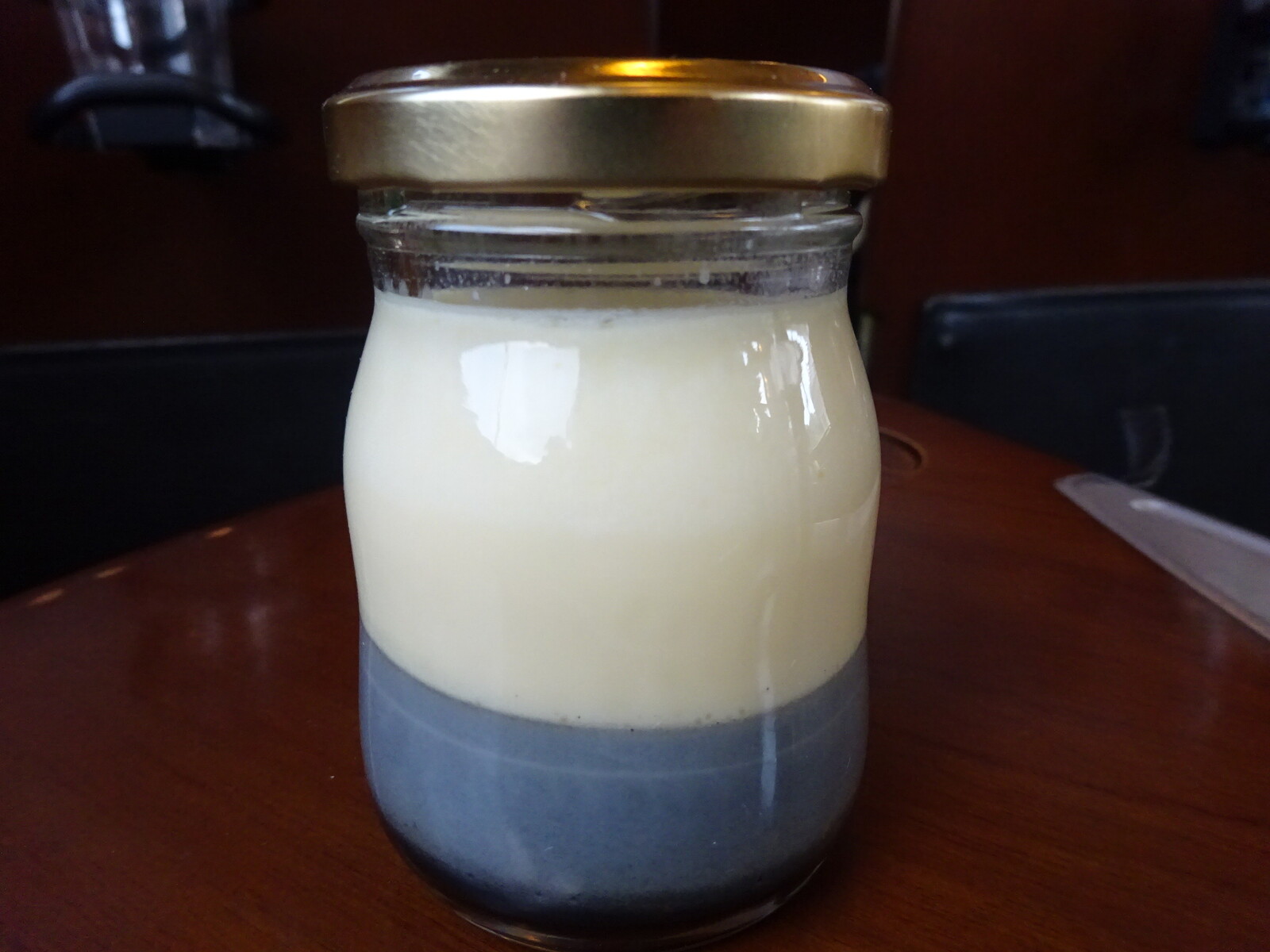 『いぶたまぷりん』もいただいてしまったよ。黒ごまプリンとクリームブリュレが2層になったスイーツ。車両のツートンと同じ配色にしたってことかな。黒ごまの香り濃厚でやや硬めのしっかりしたプリンだったよ。