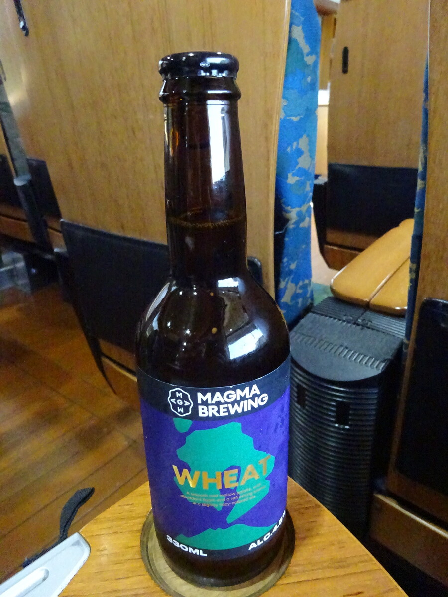 帰りは、要予約の弁当を頼んでおいたんだ。3日前に予約購入しておけば、車両内で受け取れるシステム。弁当を食べるとなれば、一緒にいただくのは地ビールでしょ。『MAGMA BREWING WHEAT』は、鹿児島のクラフトビール。