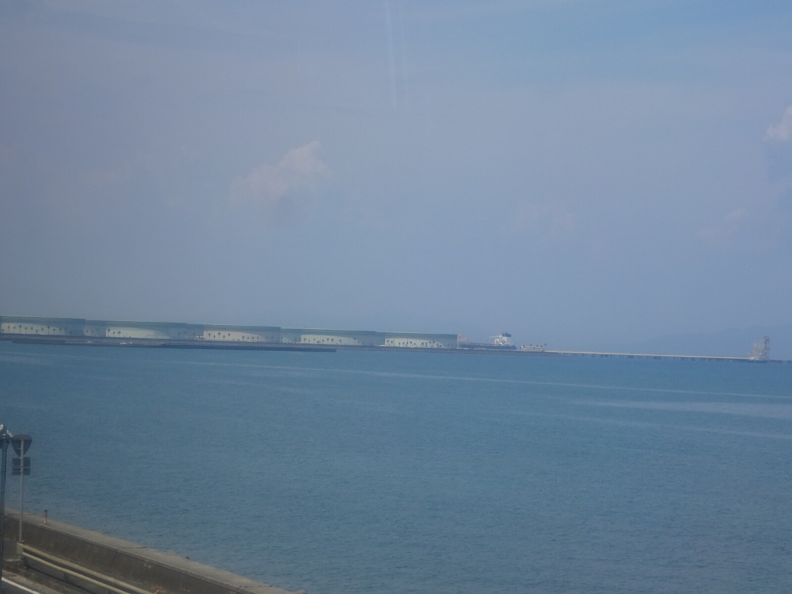 帰りの車両から見えた、喜入の石油備蓄基地。日本国内の石油使用量2週間分を貯蔵している、エネオスの石油基地だよ。