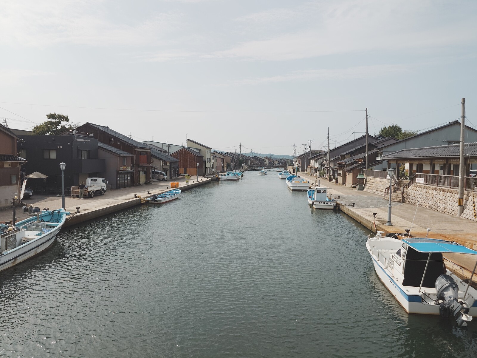内川といえば、この風景だよね。川の両脇に白と水色のツートンの漁船が点々と停まっている風景に、何ともいえない郷愁を感じるんだ。