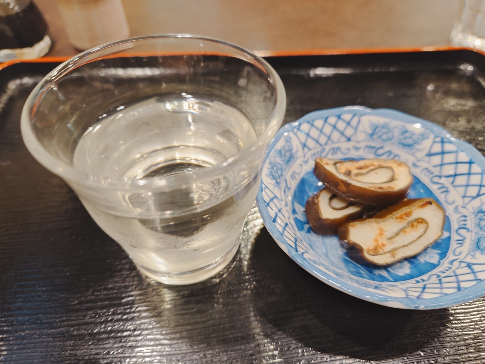 この夜は「富美菊」をグラスでいただいたよ。富山名産の『昆布巻かまぼこ』がお通し。ボク的には、こんな風に少し焼き目がついた方が香ばしくなって旨いと思っていたから、出てきたのを見てうれしくなったよ。