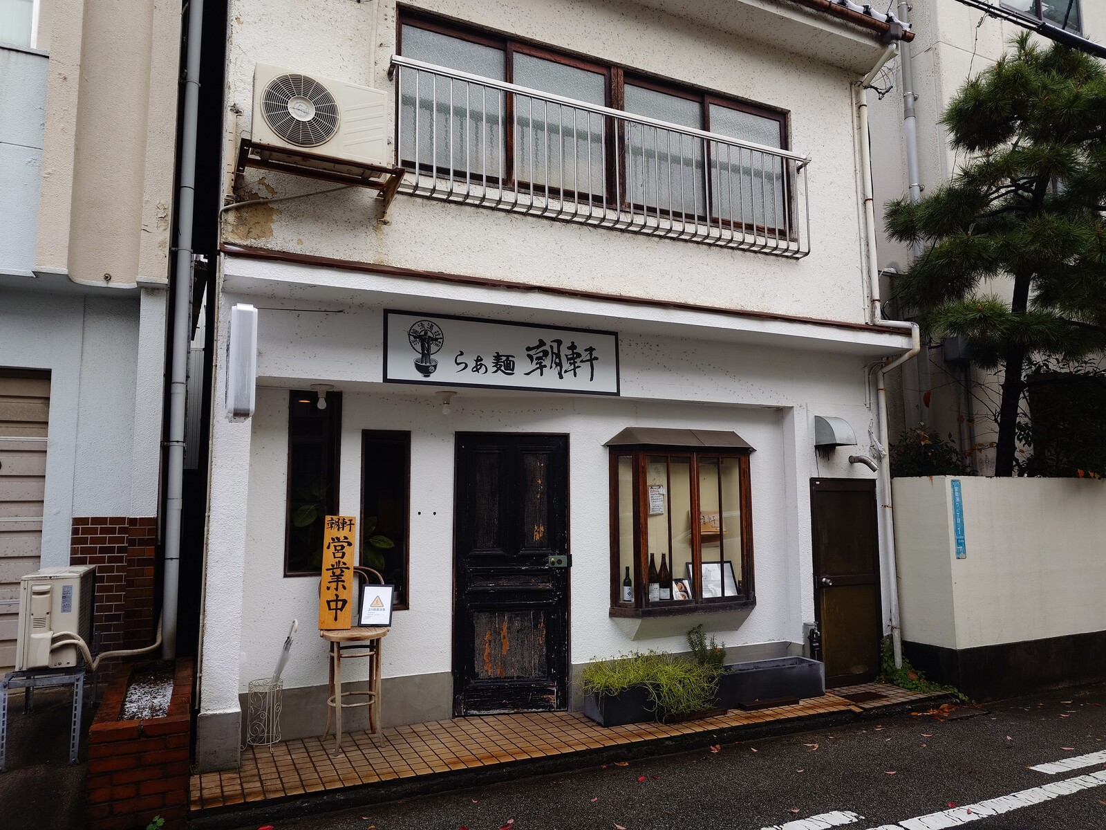 それは、去年の暮れのお話。この日は、室町通りにある「らぁ麺 朝軒」に立ち寄ってみたよ。西町から石金へとつながる広い通りから1本南を並行に走る細い通り沿いにあるこのお店で、土曜日には朝ラーを食べられるという話を耳にしたからね。朝から張り切ってラーメンを食べに来たんだ。