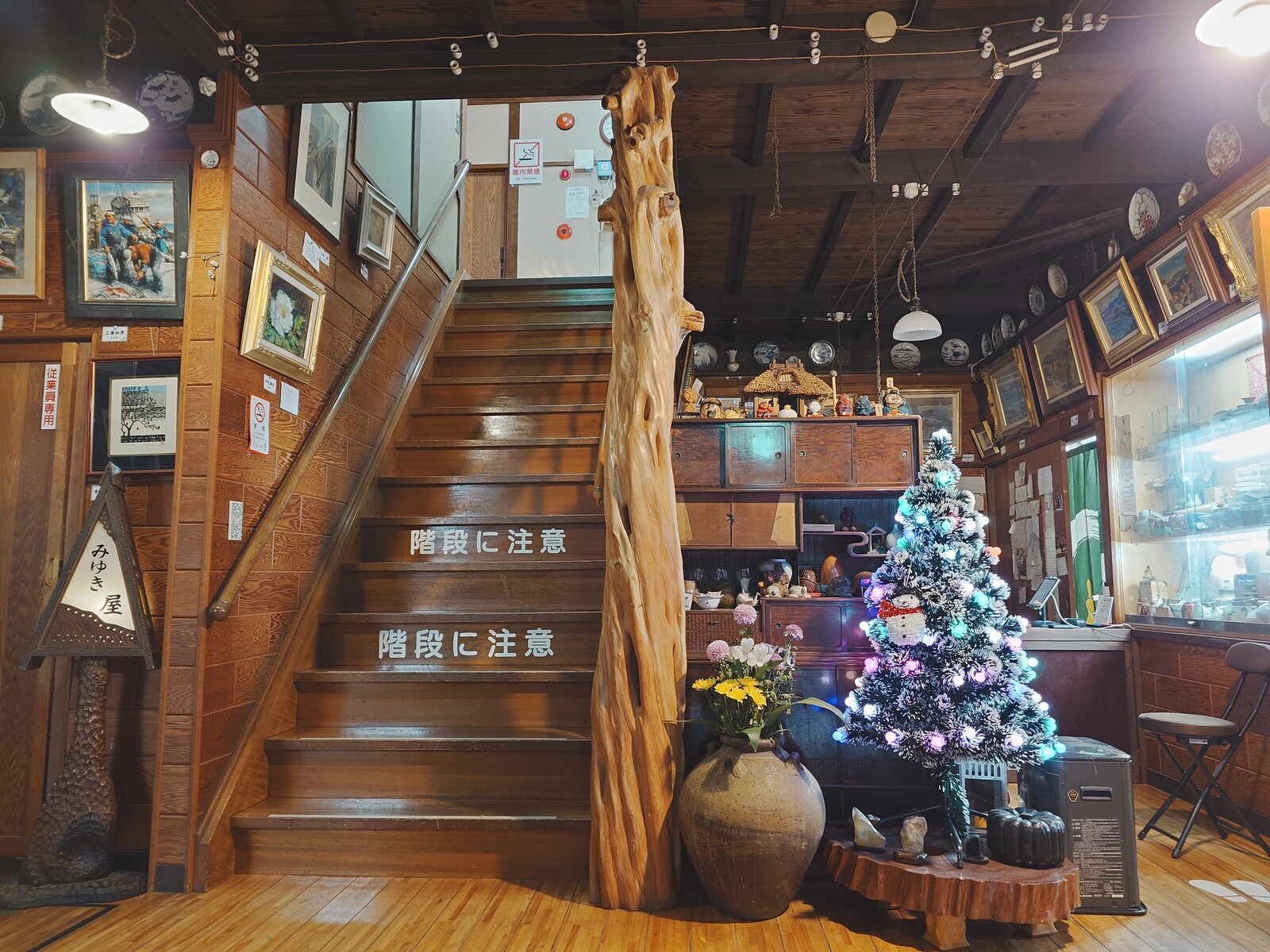 。玄関を入れば、右が小さな帳場で、左には階段。この見た目が、昭和30年代に建てられたという建物に何とも相応しい造りなのだ。おもむきあるよねぇ。