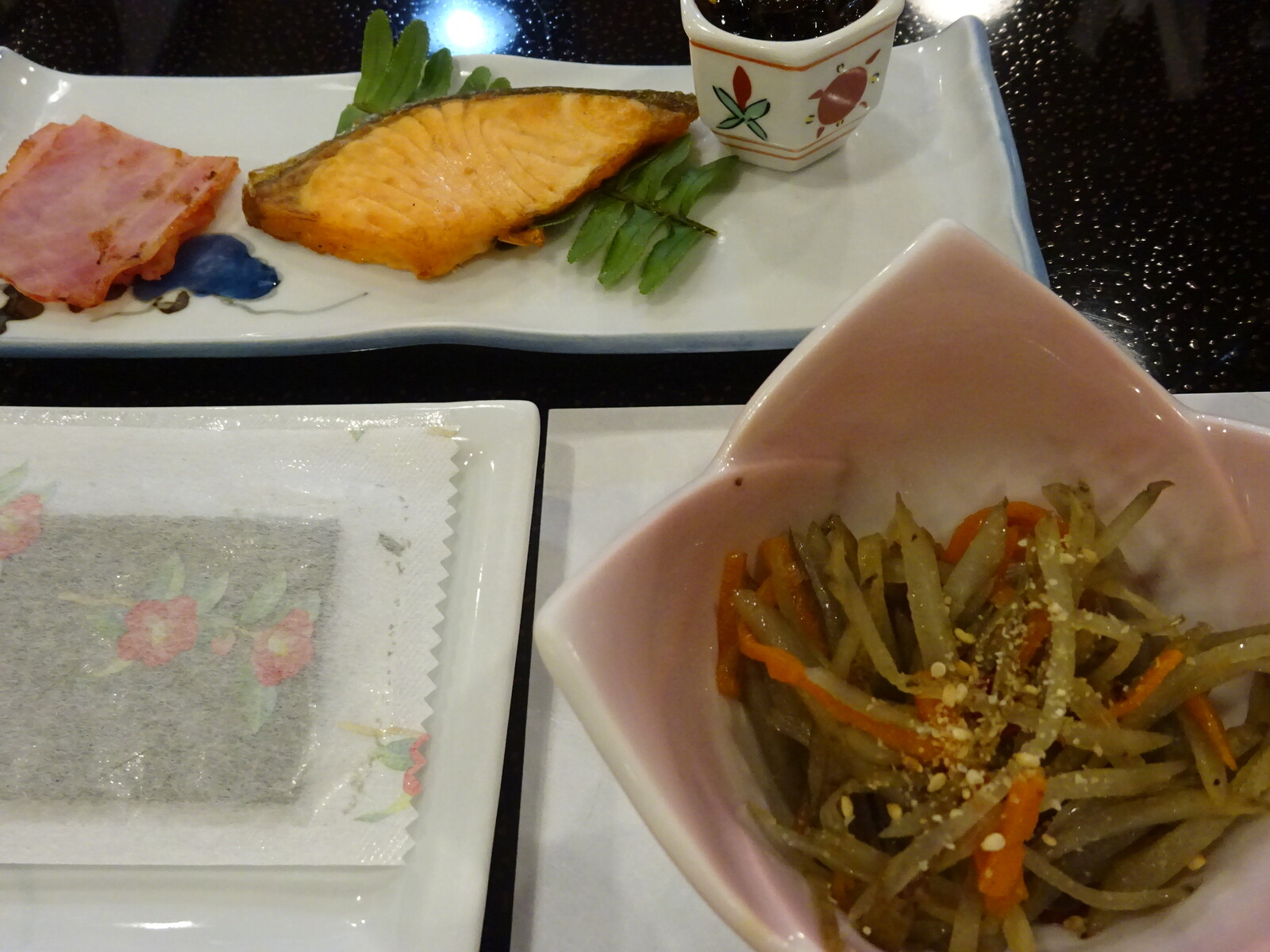 きんぴらごぼうも焼き魚もベーコンも、素晴らしい。普段、朝ごはんはあまり食べないんだけど、この日は、ご飯のおかわりまでしてしまったんだ。