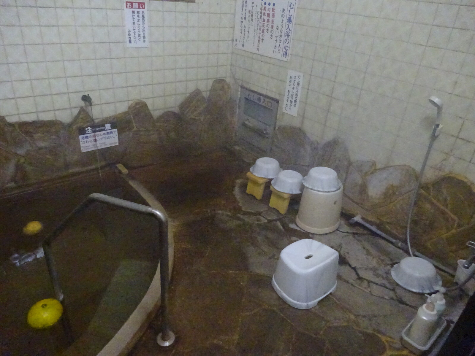 この内湯の右奥の方に小さな扉があるでしょ。この扉の奥には、むし湯ができるようになってたよ。