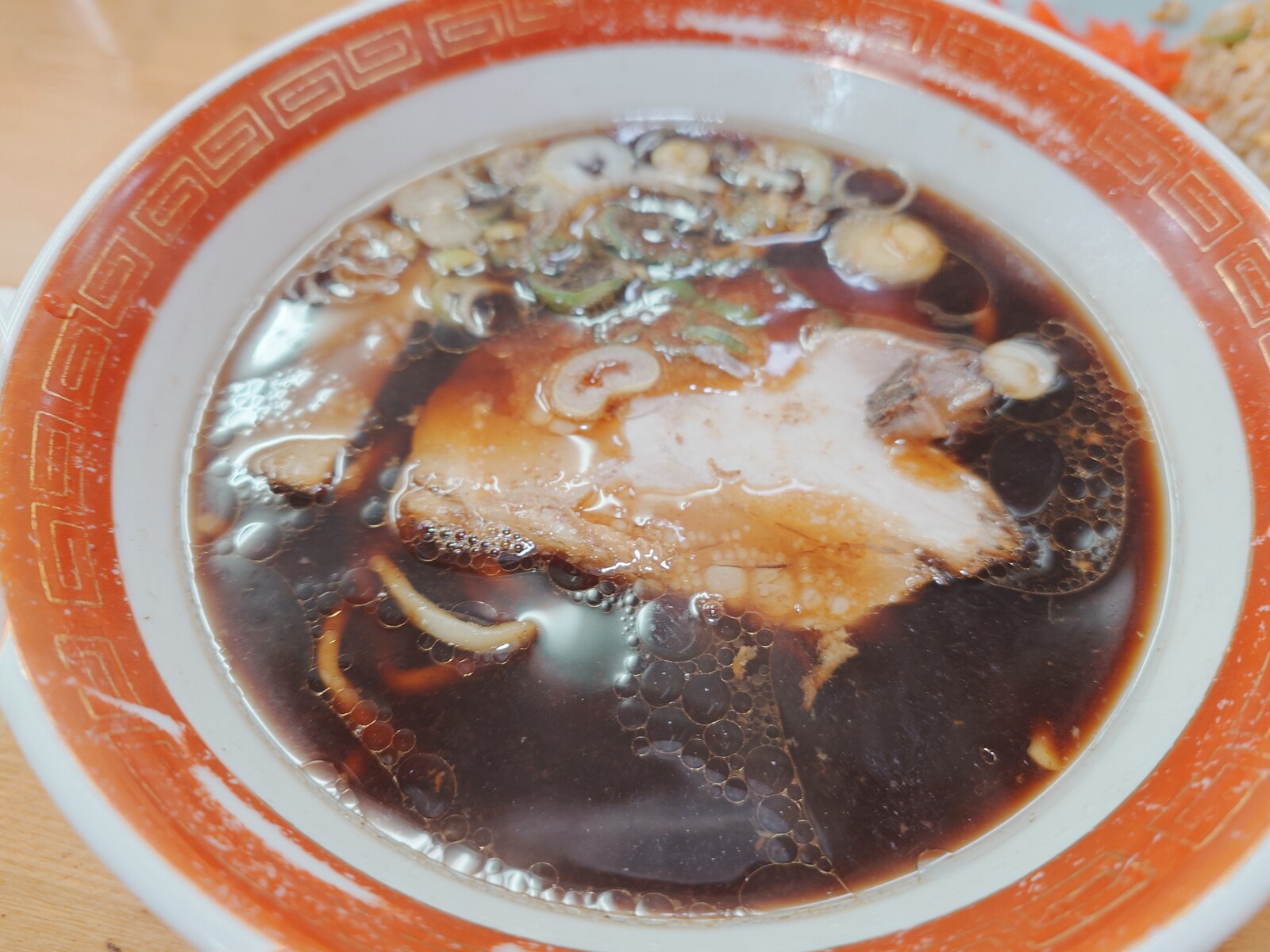 登場したのがこちら。ラーメンも食べたかったから、『半チャーハン』にしてみたよ。これがまた実に濃厚な一品。この店の黒醤油ラーメン『ヤング』のスープをそのままご飯にまぶしたような味付けで、おおぅ、とうなってしまったよ。