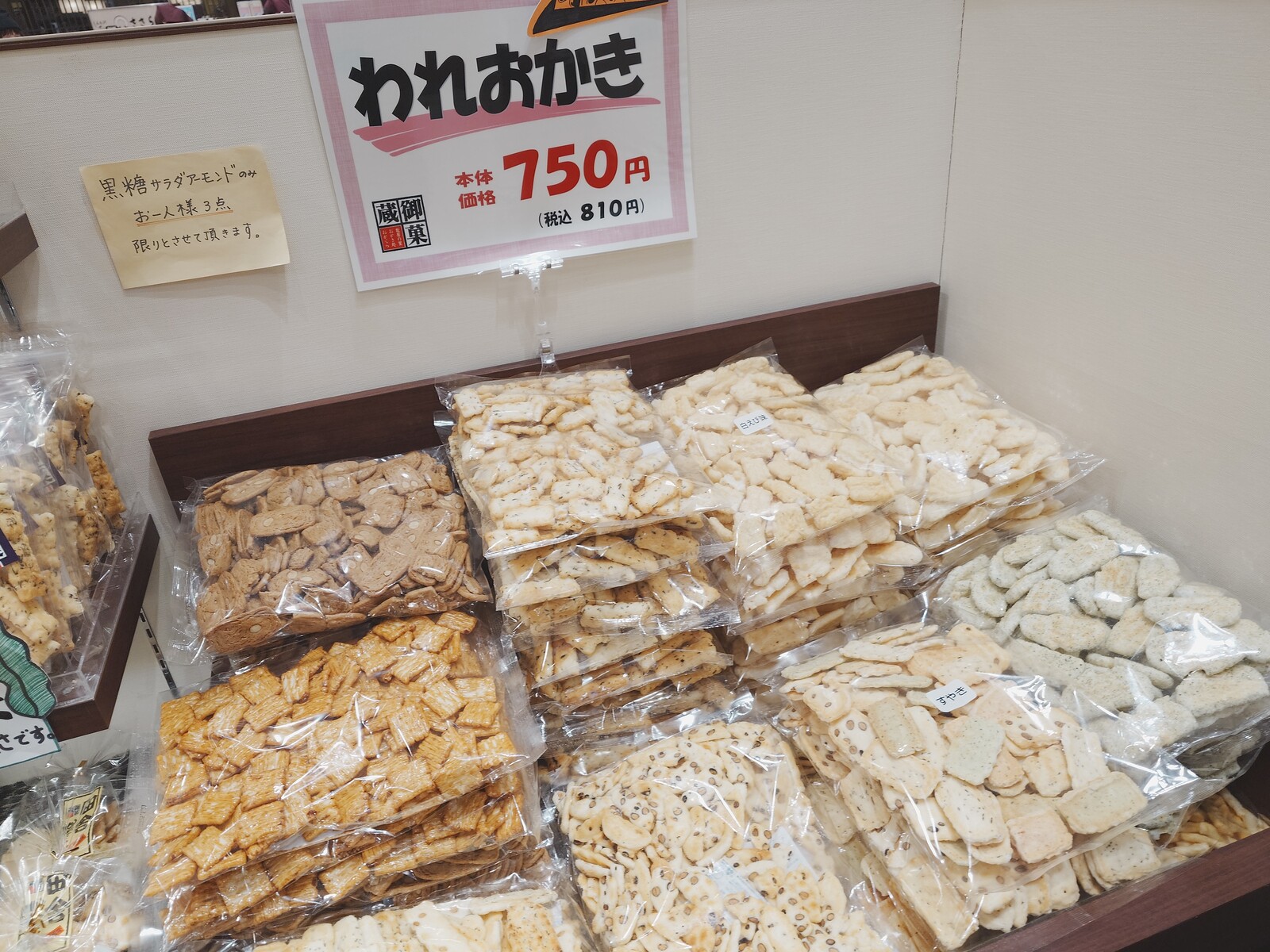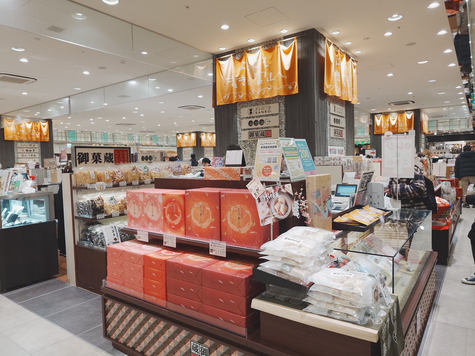 この日は、JR富山駅高架下の「とやマルシェ」の中にある砺波のかき餅屋さん「御菓蔵(おかぐら)」でお買い物。