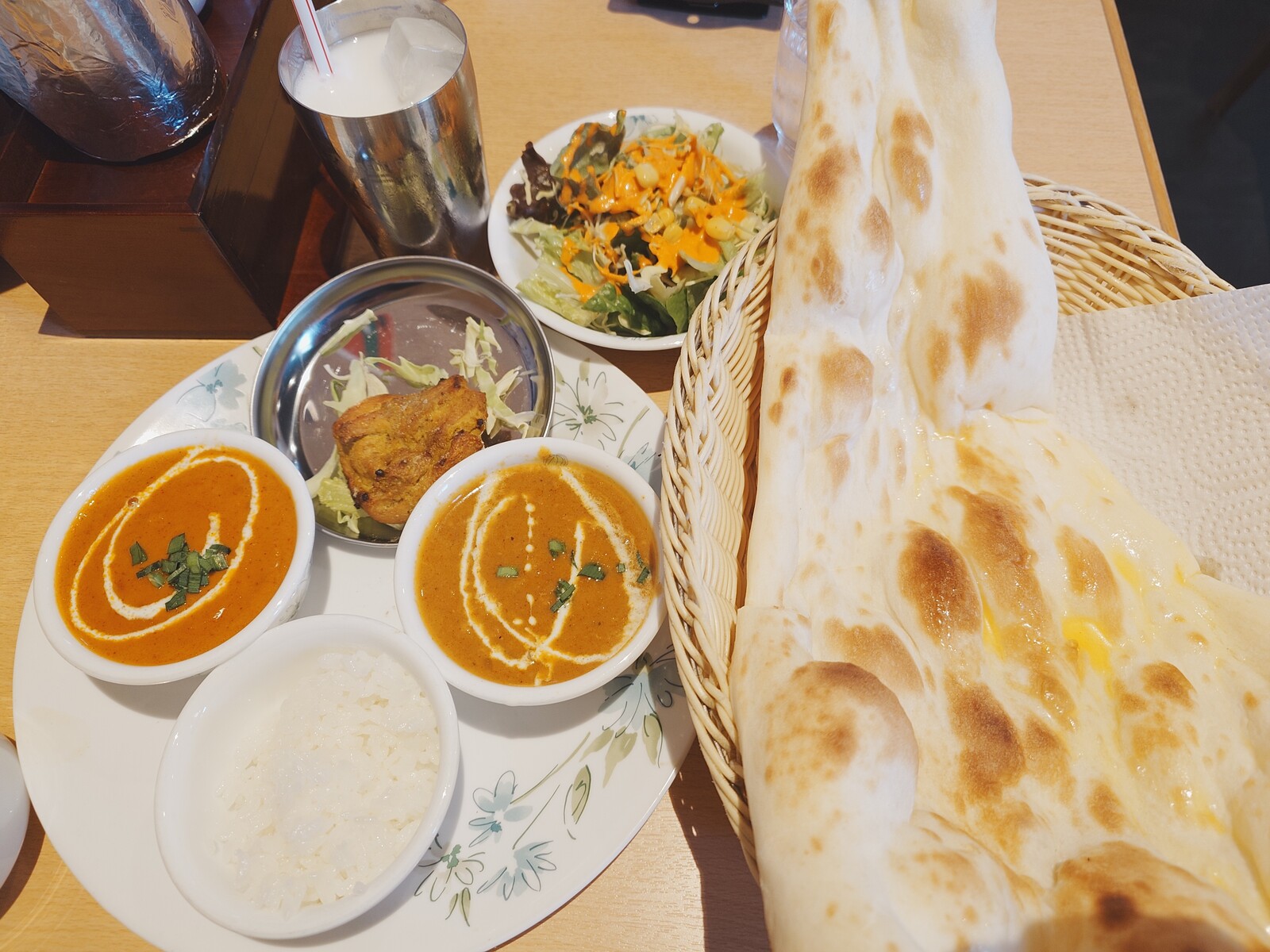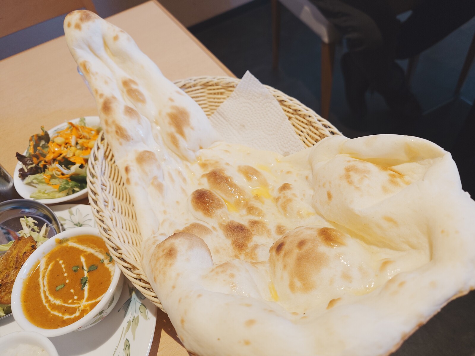 何よりもこの『ナン』がとてつもなくでかいんだよね。ナンのおかわりは自由なんだけど、2枚目に挑戦する人がはたしているだろうかと思うほどのビッグサイズだったんだ。サクふわっとした食感も秀逸。