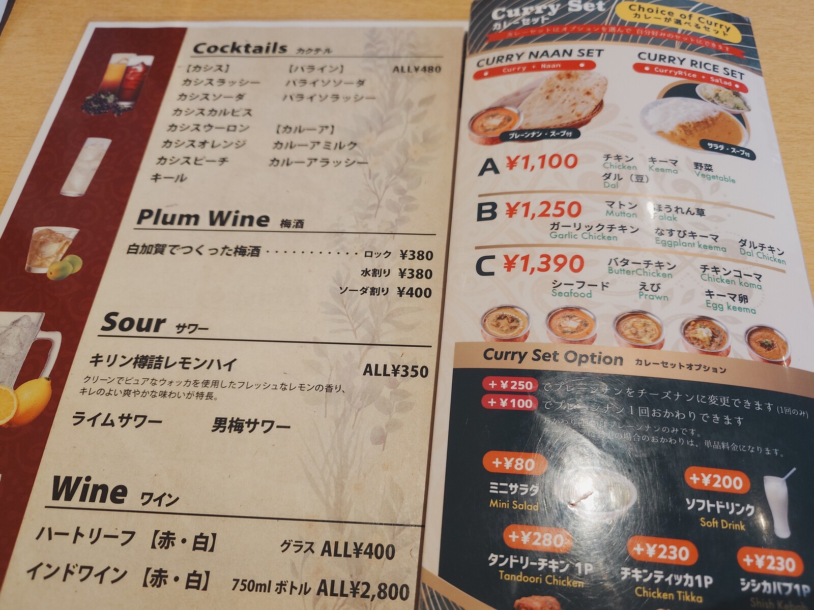 もともとは和食系のお店が入っていた店舗は、内装はその時のままと思われ、インド料理屋さんという感じではないんだけど、お客さんでぎっしり埋まっていたよ。美味しければ、雰囲気はあまり関係ないってことなのかと思ったんだ。