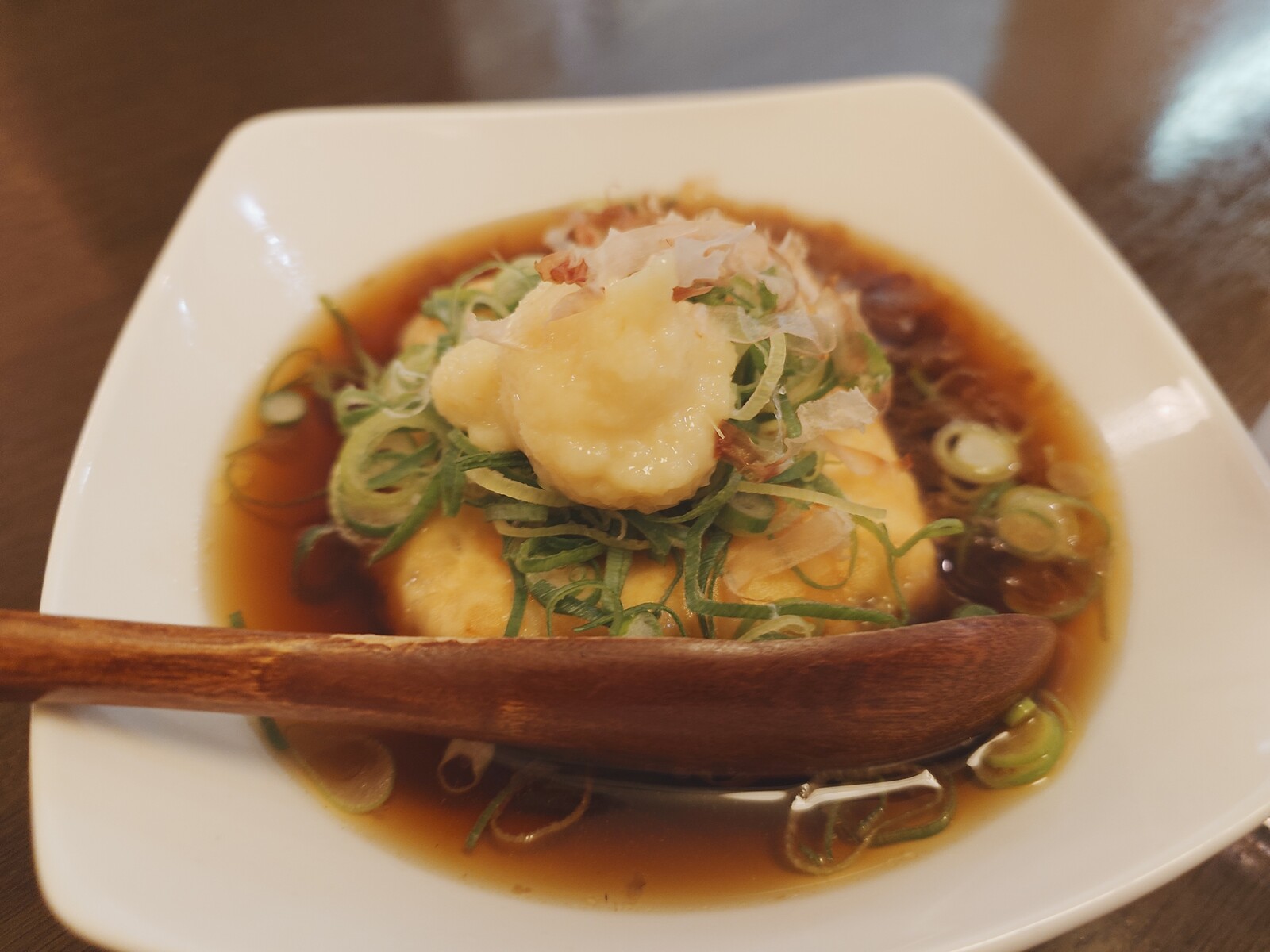もう一品は『揚げ出し豆腐』。サクッとした衣を付けて揚げた豆腐が、ちょっと濃い目の出汁につかって登場。揚げ出し豆腐、ってメニューも、けっこうどの店にもあるけど、店ごとに味の違いが大きいのもこのメニュー。それがまた、おもしろいと思うのだった。