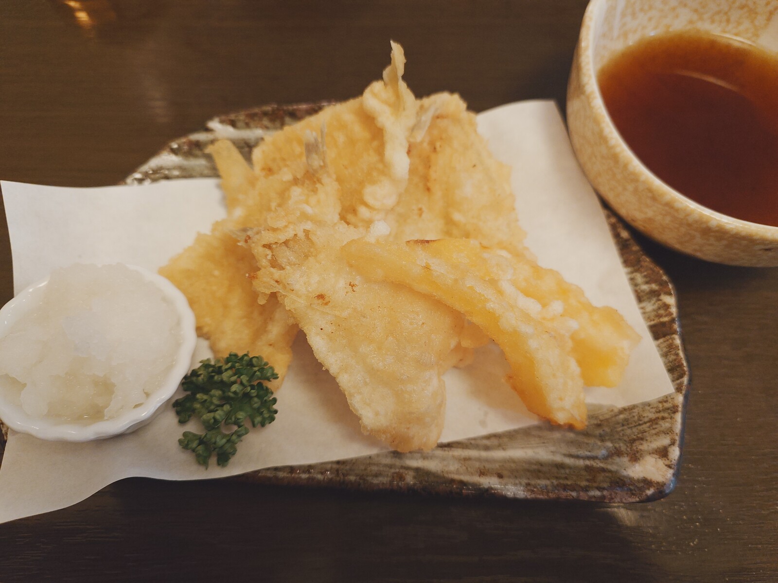 。『キスの天ぷら』があったから、頼んでみたよ。昔から、魚の天ぷら、っていえば、ボクの中では『キス』が一番なんだよね。淡白なんだけど、うまみが効いてるところが、天ぷらに実にぴったりだと思うんだ。ていうか、キスを天ぷら以外で、どうやって食べるというのか?