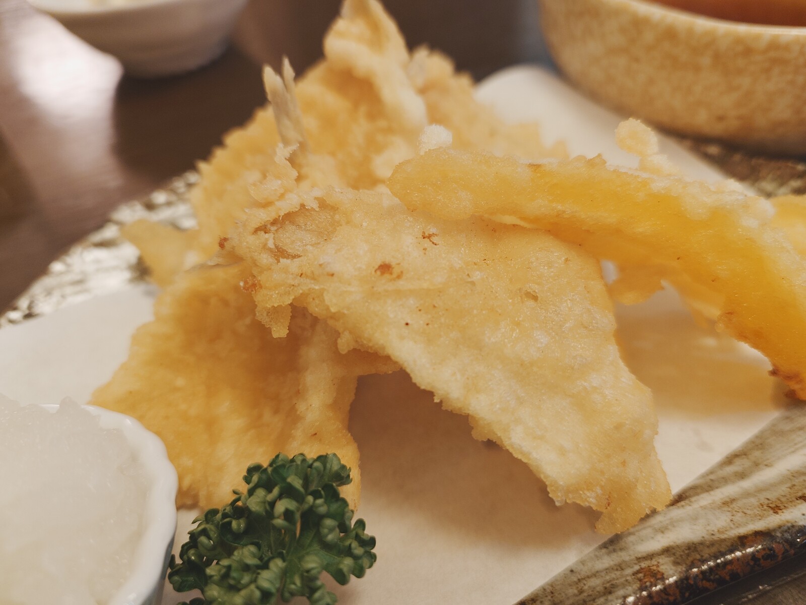 このお店の『キス天ぷら』、衣のサクサクがキスの旨味を実によく引き立ててくれるんだ。これまた、何とも素晴らしい。