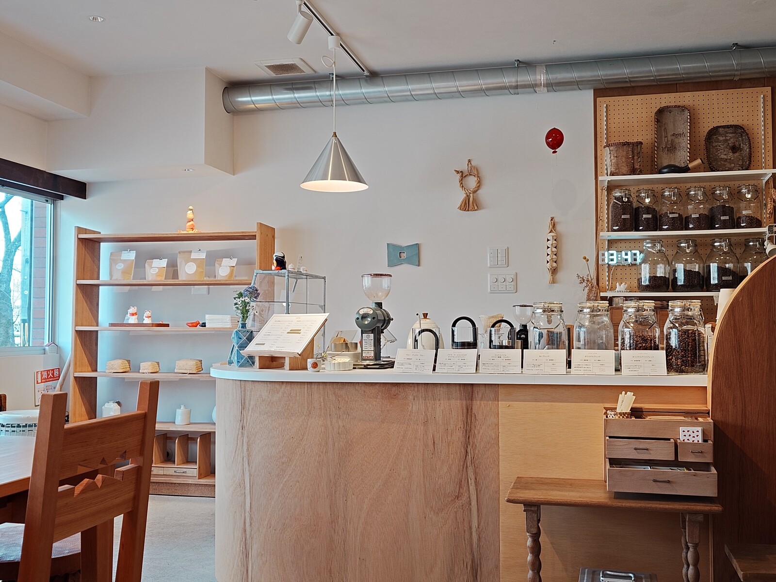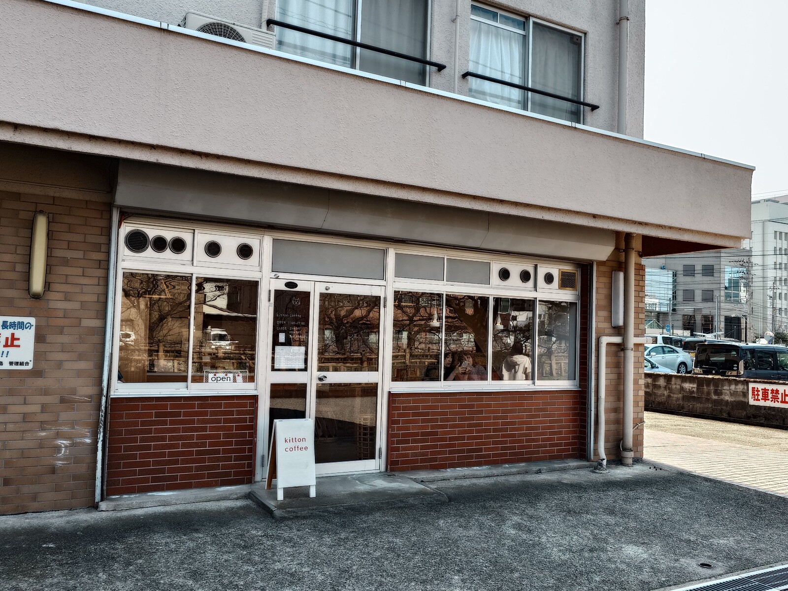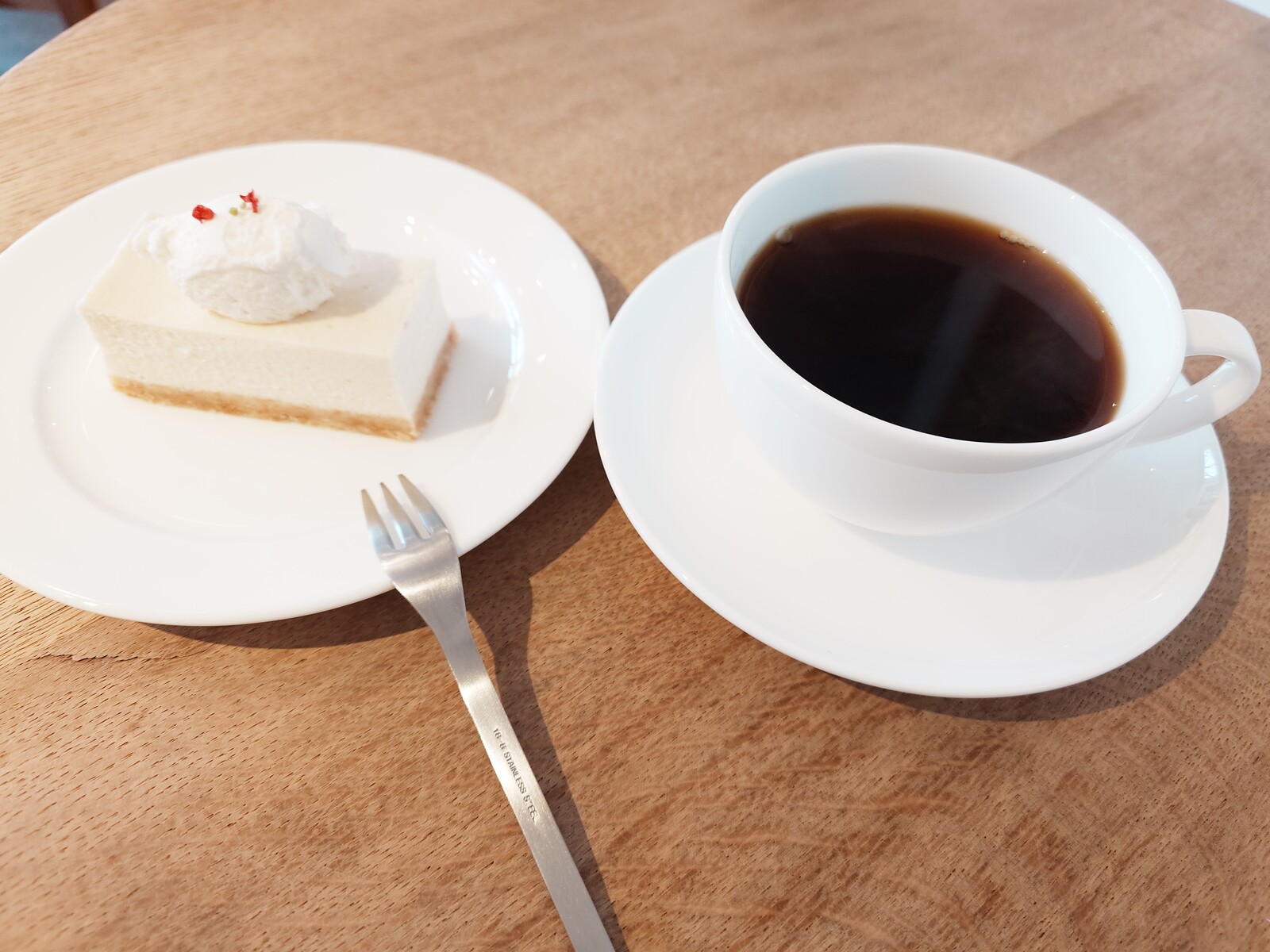 お店の名前は「kitton coffee(キットンコーヒー)」。白壁の店内にナチュラルウッドの家具を配した、かわいらしい感じのお店だよ。注文したのは『オリジナルブレンド』。『レアチーズケーキ』も、あるのを見つけるとついつい頼んでしまうのだった。