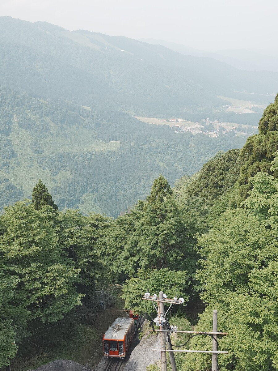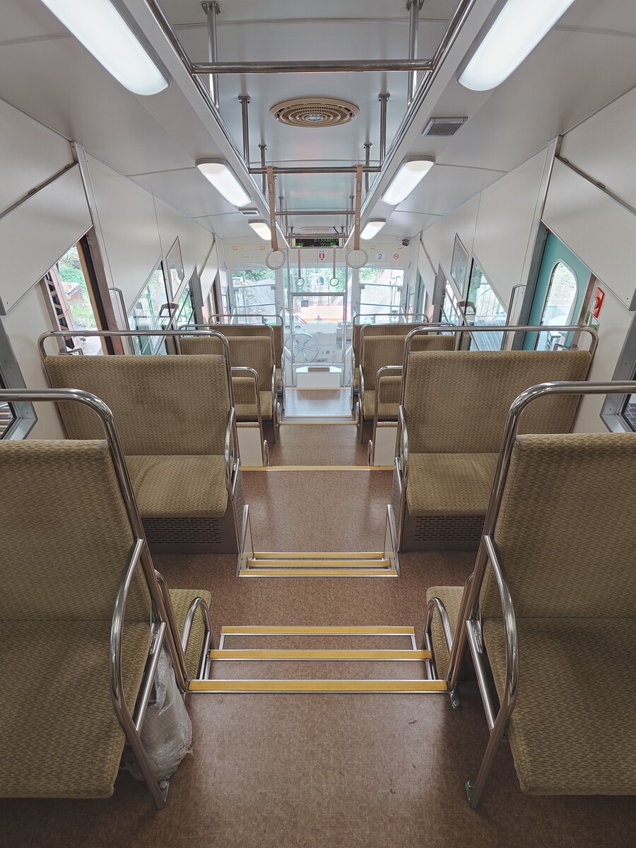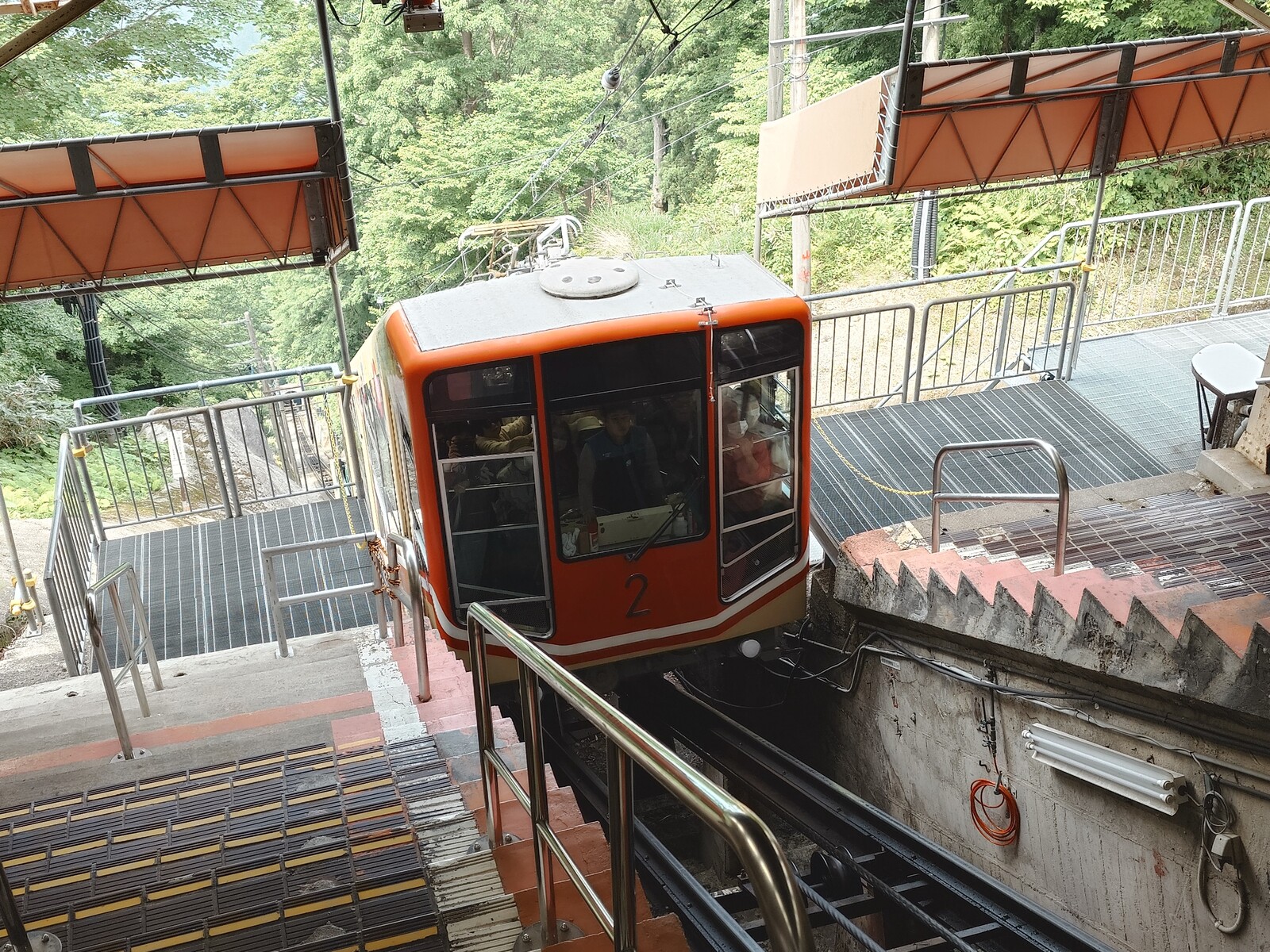 下りのケーブルカーは、なんとお客はボク一人。貸し切りだなんて、珍しいね。
