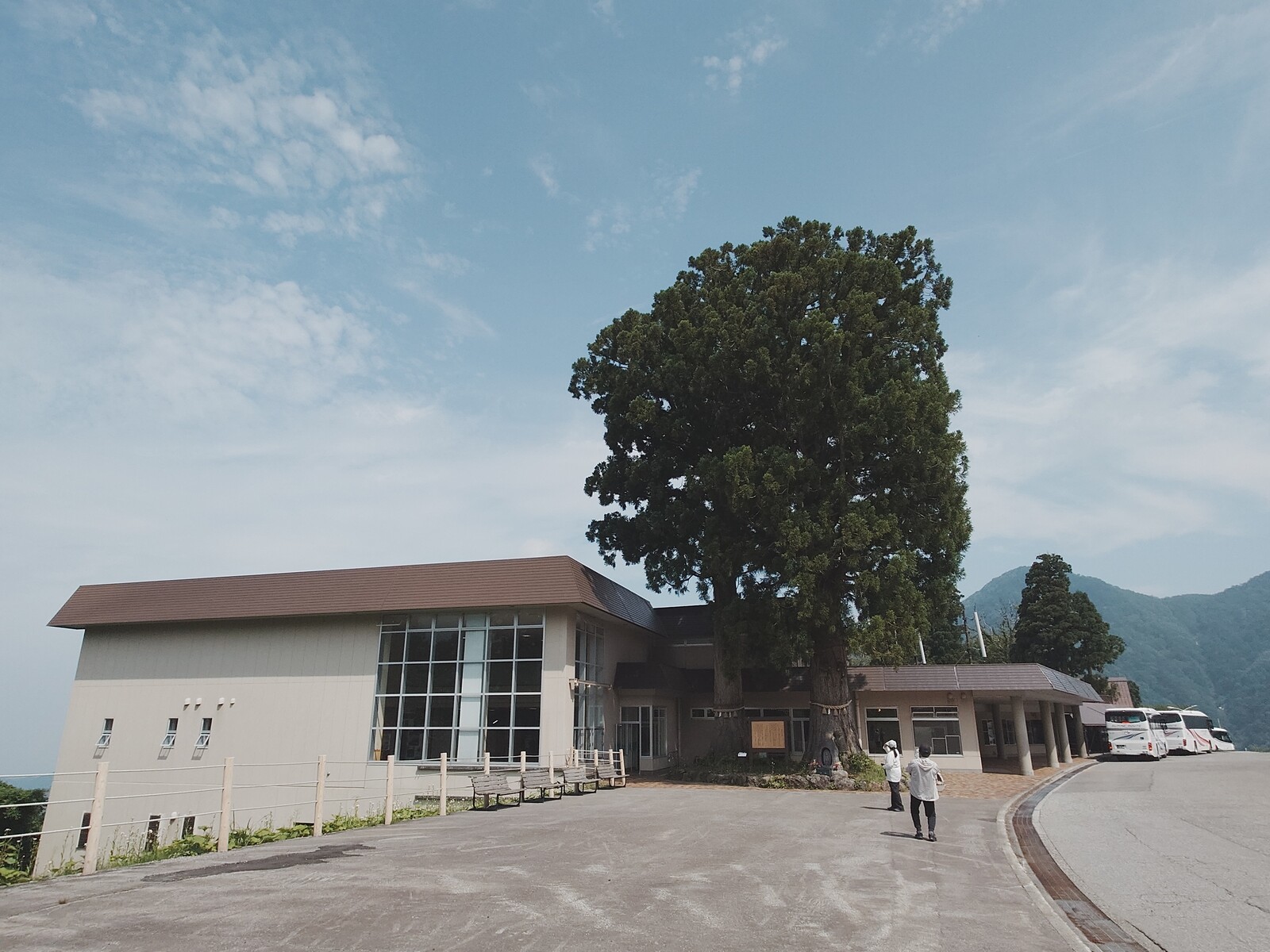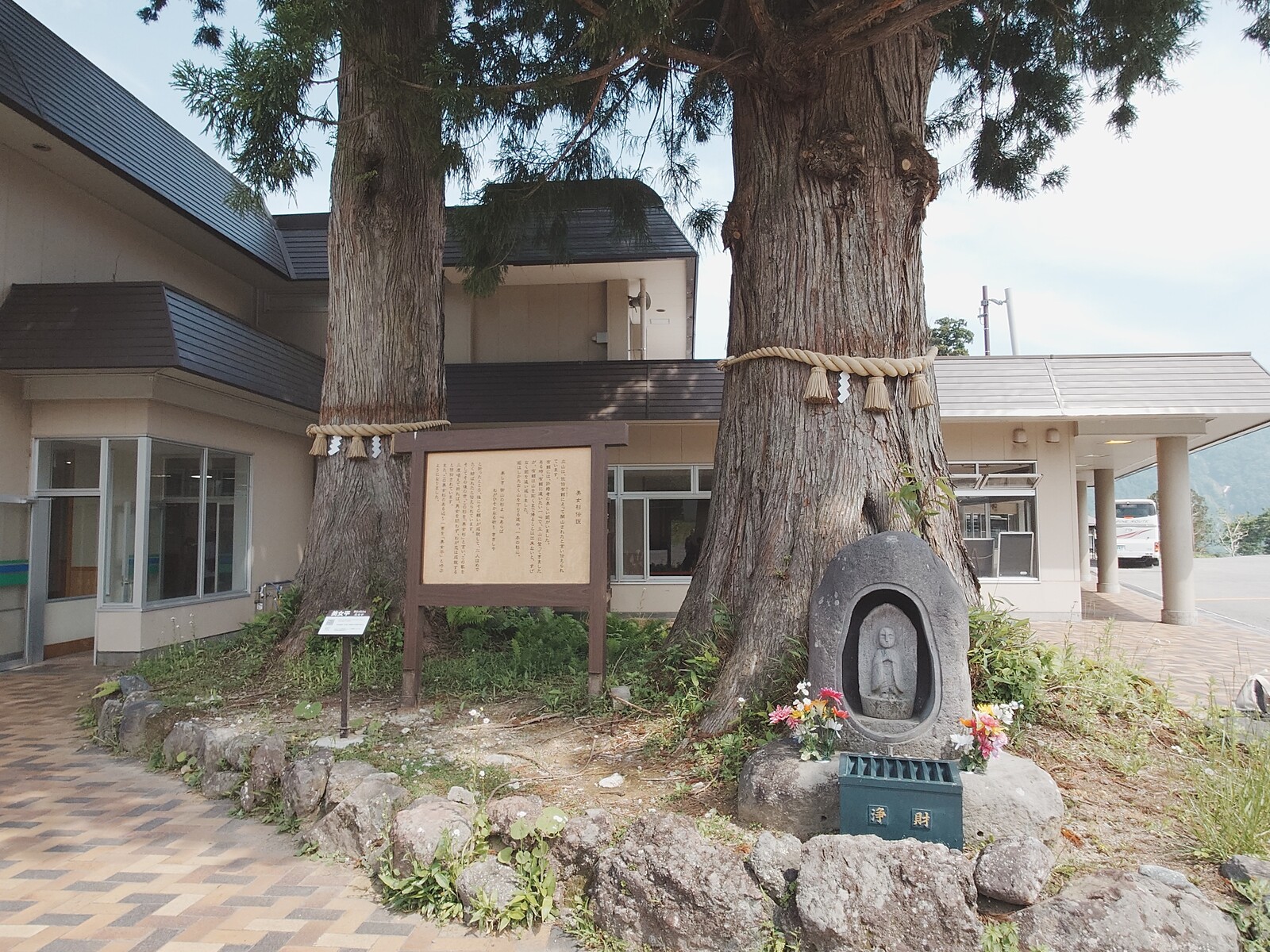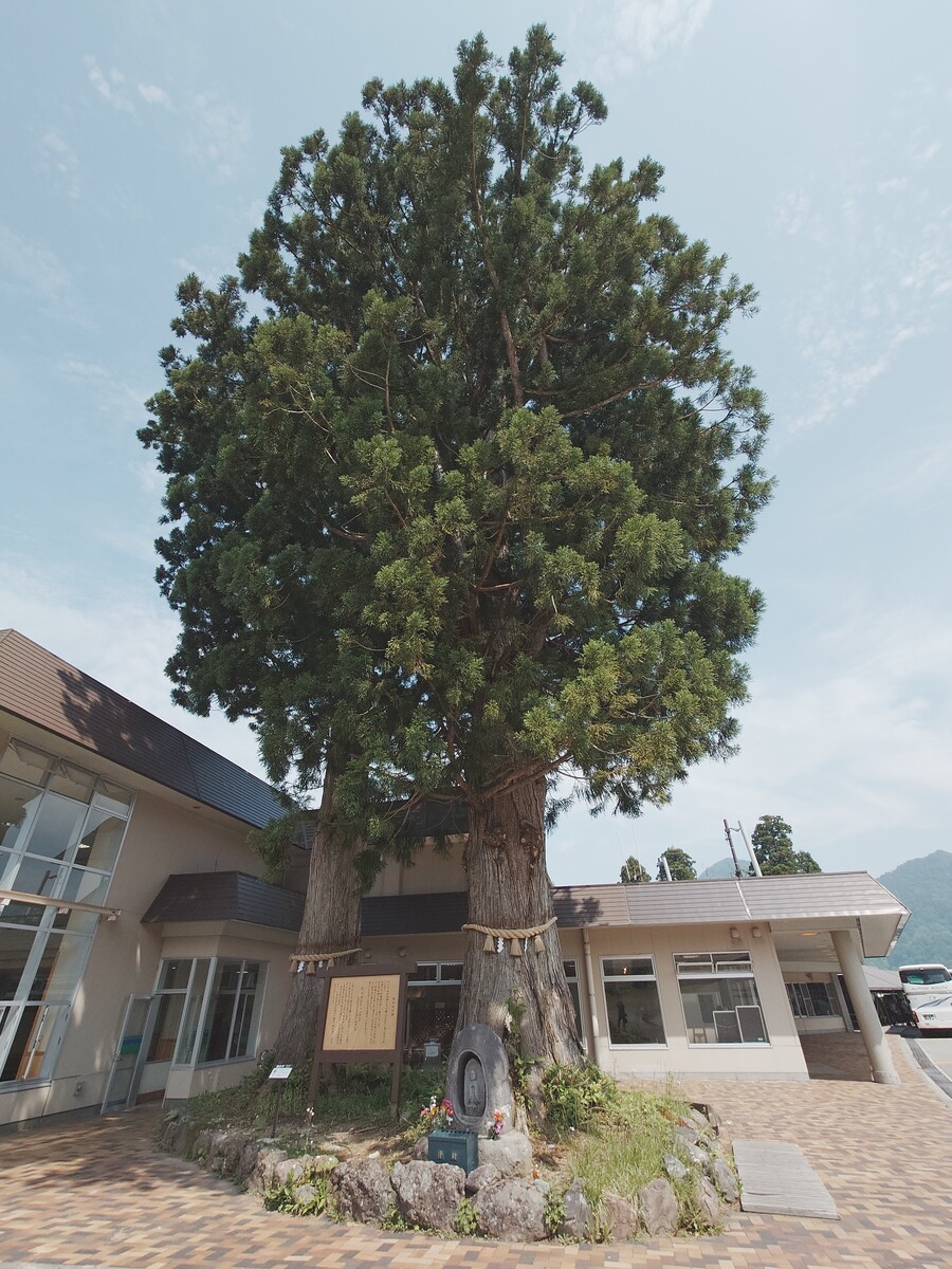 美女平の名前の由来となった「美女杉」が、駅のすぐ横にあるよ。