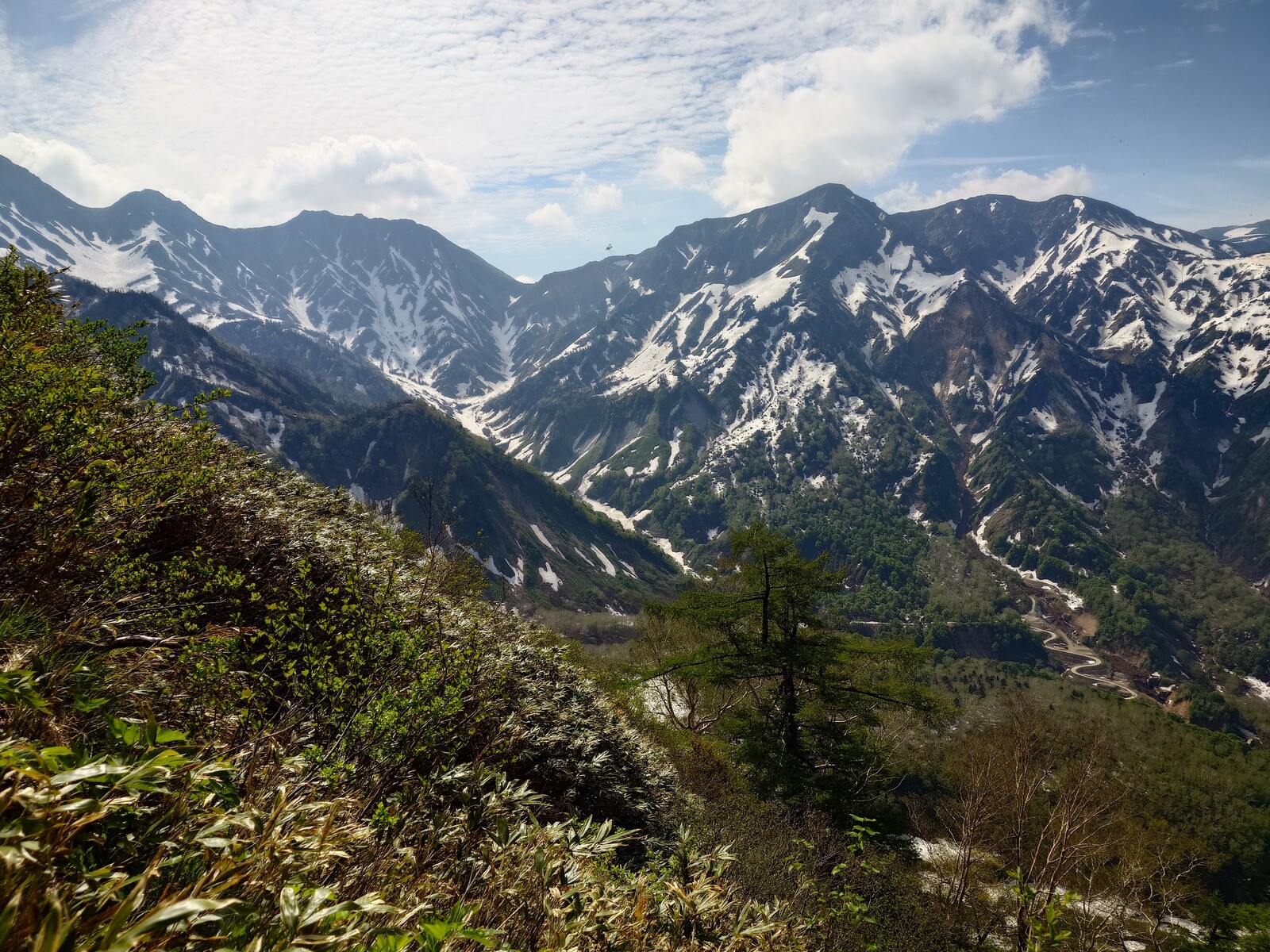 雪が少し残って、初夏らしさを感じる美しい風景だったよ。これこそが絶景と呼ぶにふさわしい。がんばってここまで来てよかった〜。
